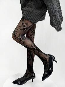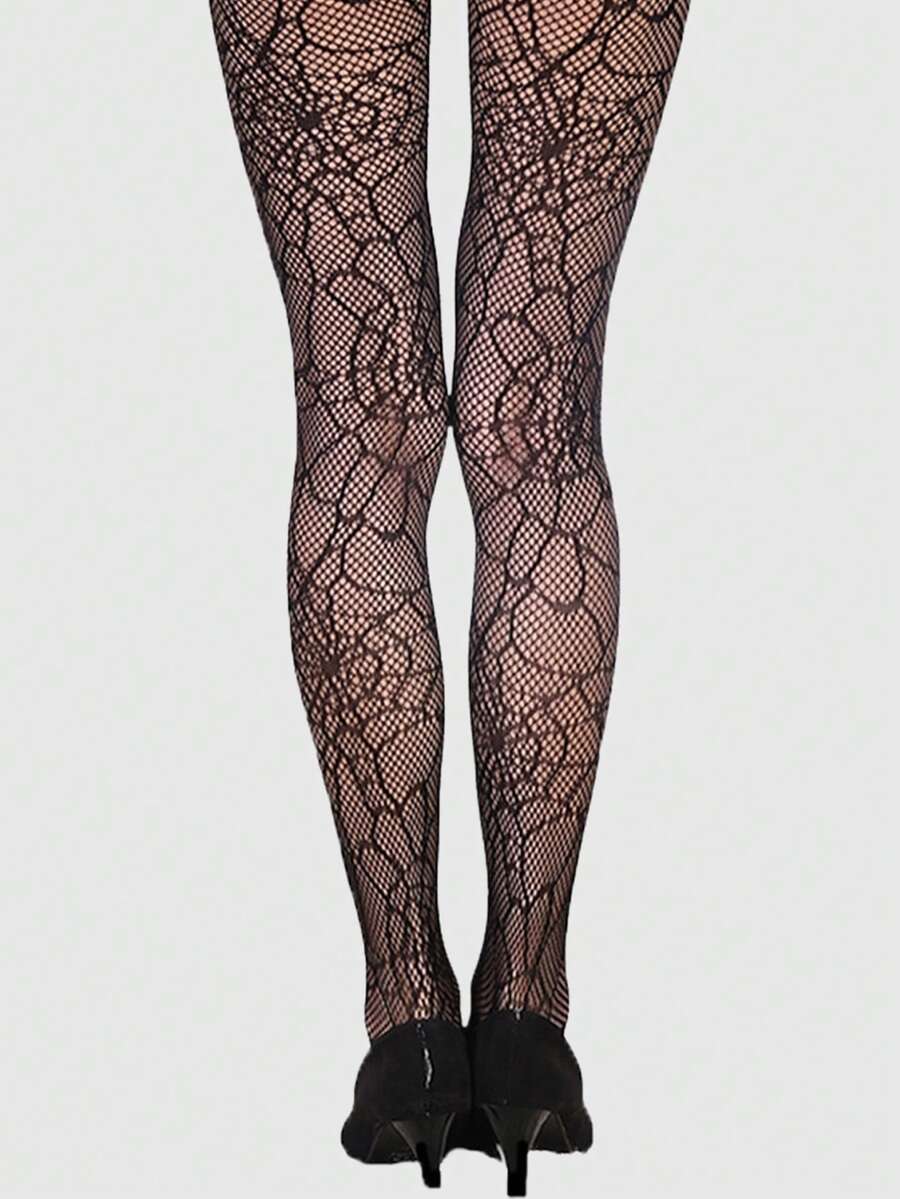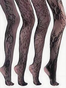 Grunge Punk 4 pares de calcetines de red de pesca de estilo Y2K aleatorio, medias con estampado de leopardo, flores, telarañas y elementos de estilo Spice Girl, leggings elásticos y delgados, adecuados para uso diario, fiestas y baile