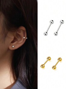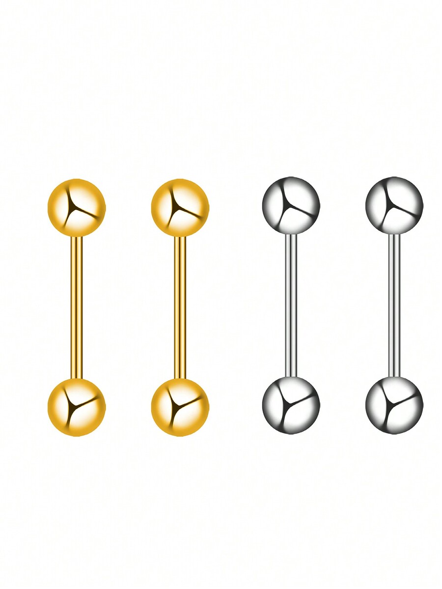 Grunge Punk 4 Unids/set De Tornillo Giratorio De Acero Inoxidable, Perno Prisionero De Hueso Del Oído Y Perno Prisionero De Oreja De Doble Bola En Forma De Mancuerna Para Hombres Y Mujeres