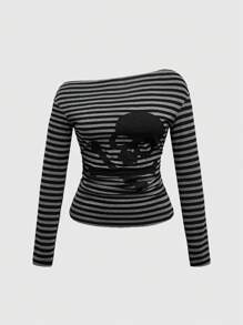 Grunge Punk Camiseta de manga larga con bordado de knit para mujer con subcultura punk Harajuku a rayas o bordado a metricmetricular