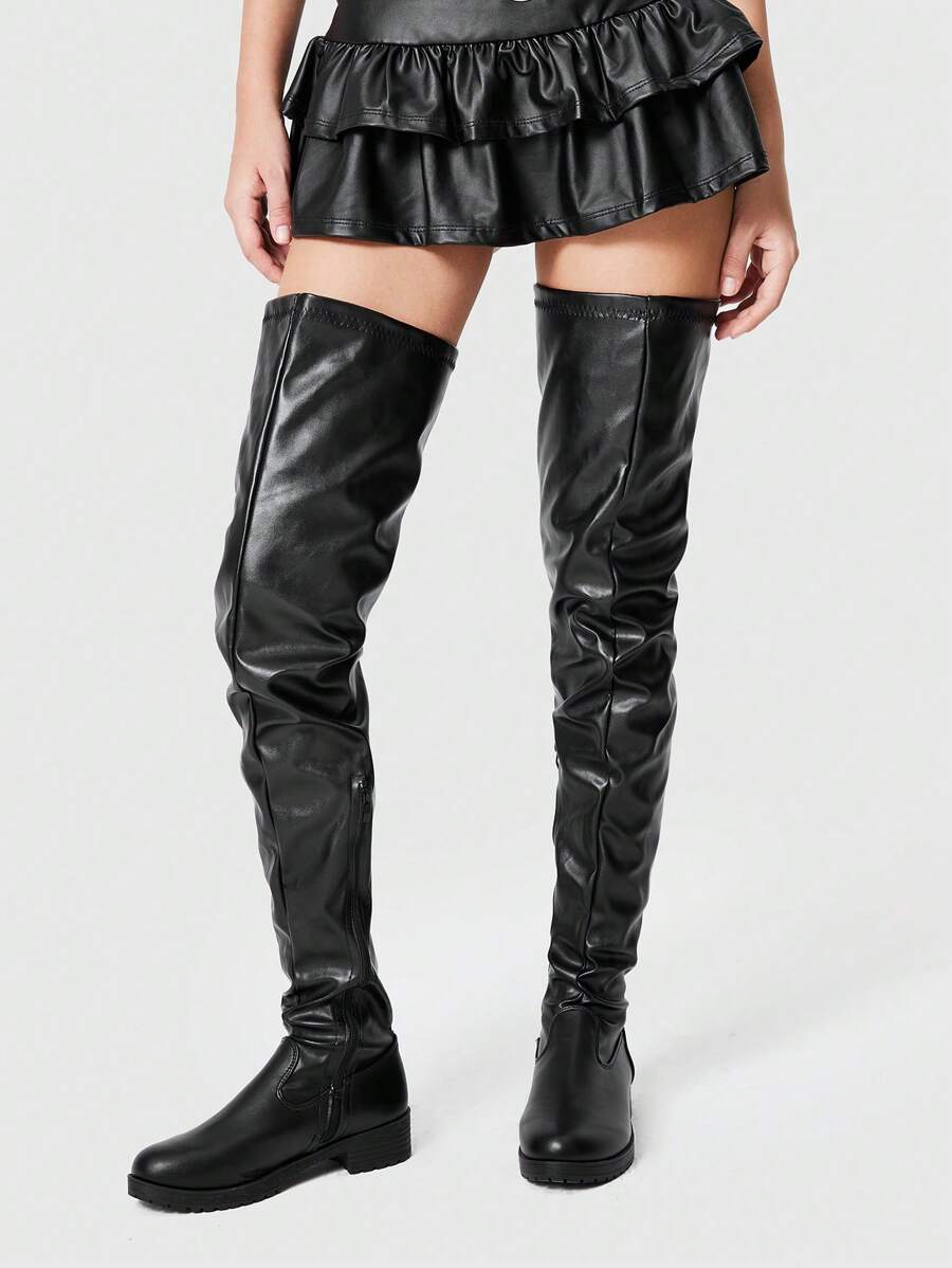 Grunge Punk Botas de plataforma de media pantorrilla con cordones negros y suela gruesa, botas góticas de motociclista, botas por encima de la rodilla para mujeres para Año Nuevo y vacaciones