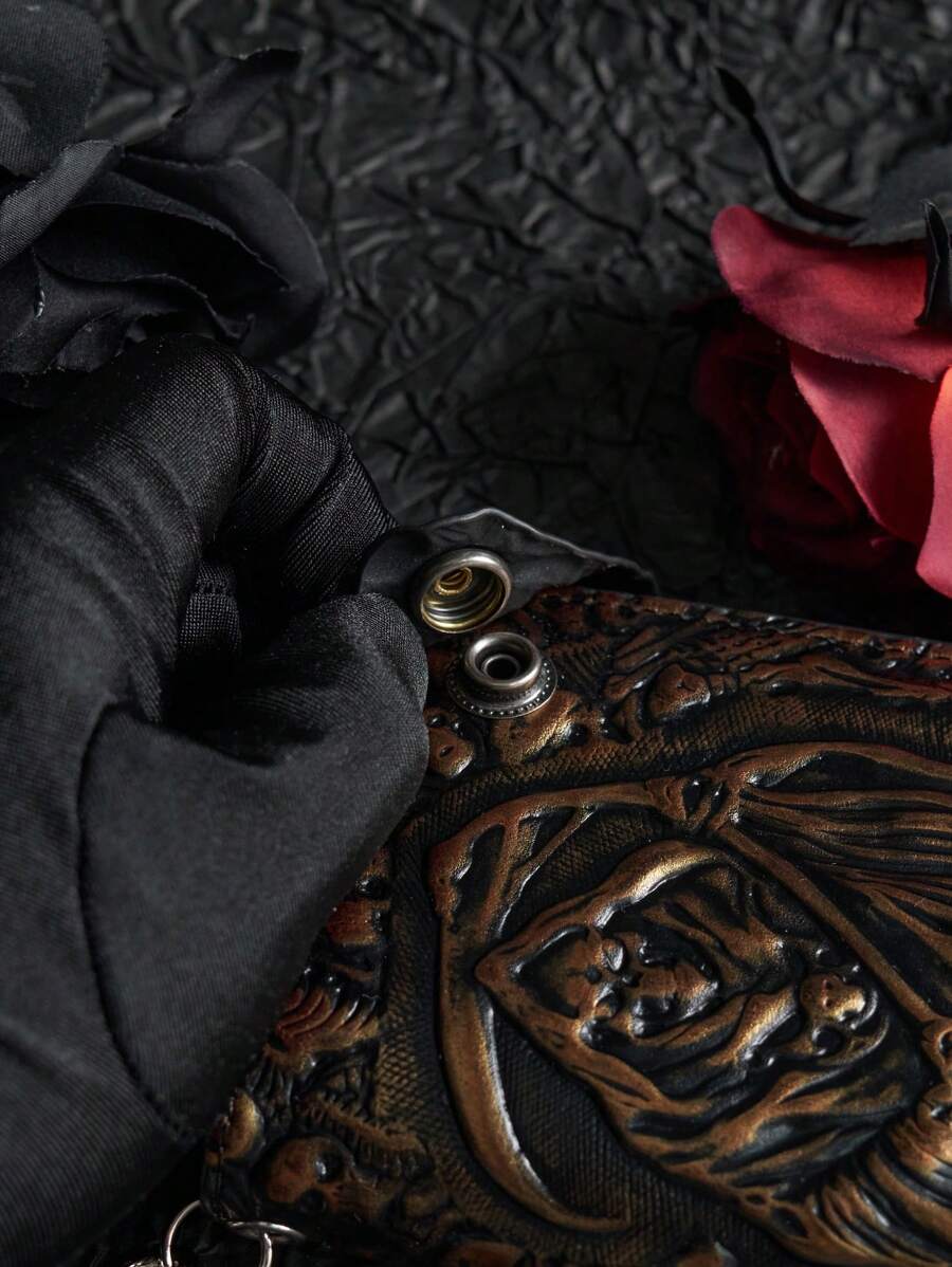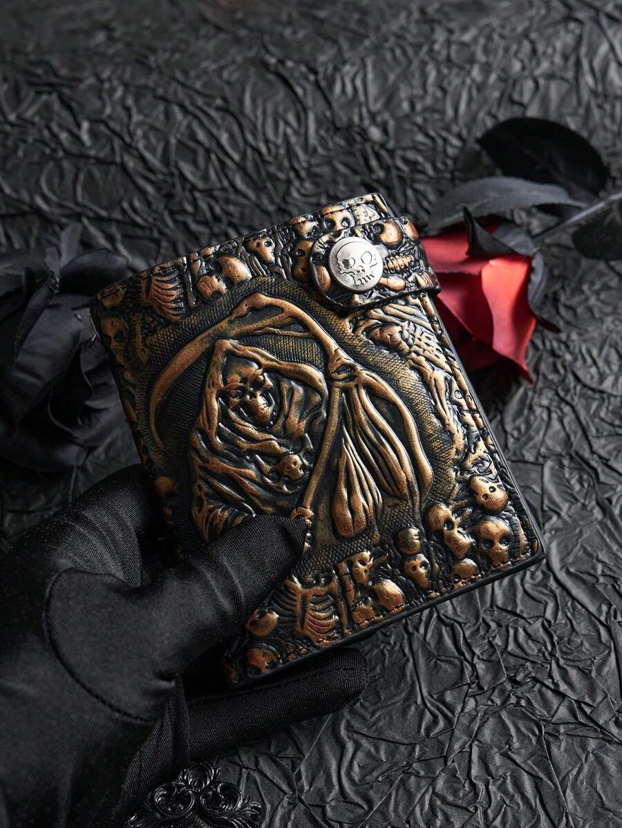 Grunge Punk Cartera de bronce con patrón 3D de esqueleto - Billetera corta unisex de estilo gótico retro punk rock casual, diseño único ideal como regalo para el Día de San Valentín