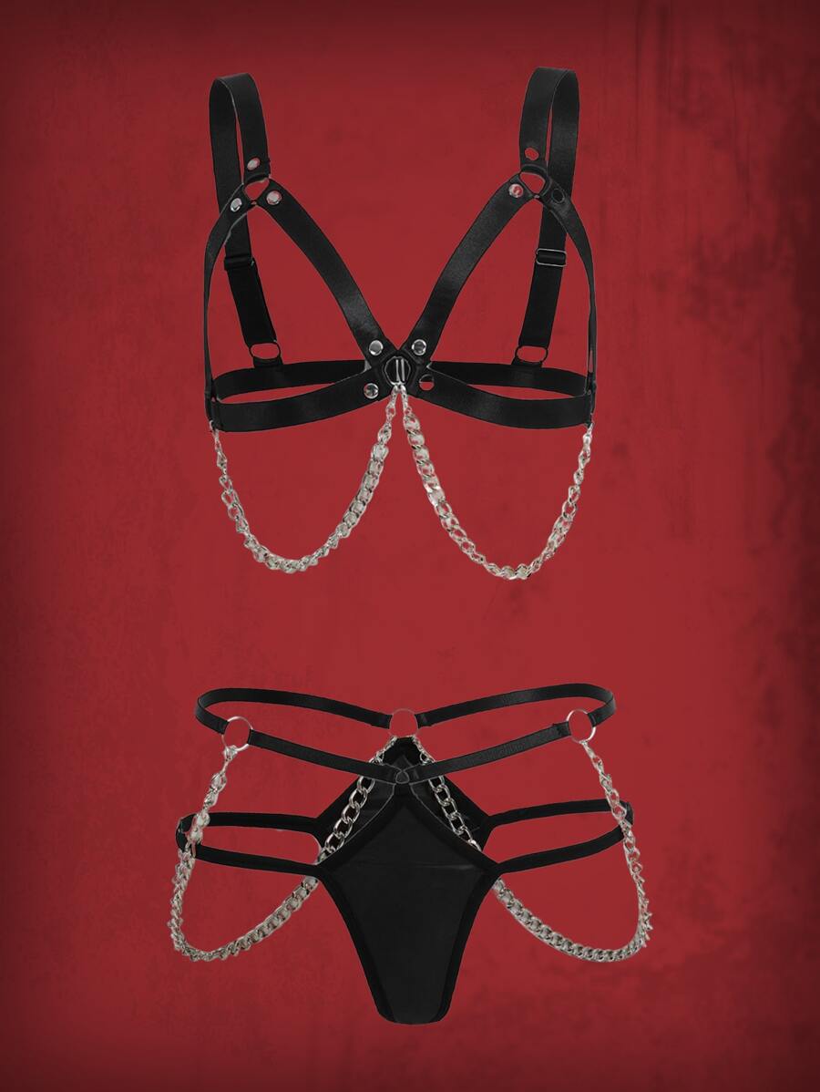 Grunge Punk Set de lencería con diseño de cadena arnés