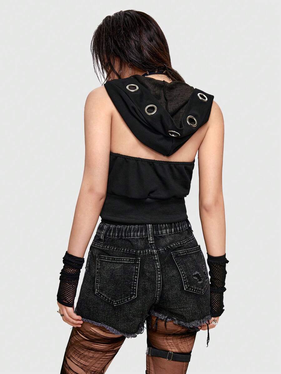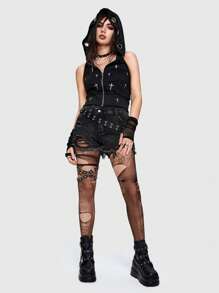 Grunge Punk Sudaderas con capucha sin mangas de ojales de cremallera con estampado de cruz, góticas, para verano.