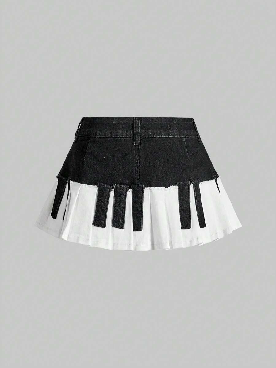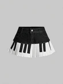 Grunge Punk Minifalda de mezclilla plisada con diseño de teclas de piano