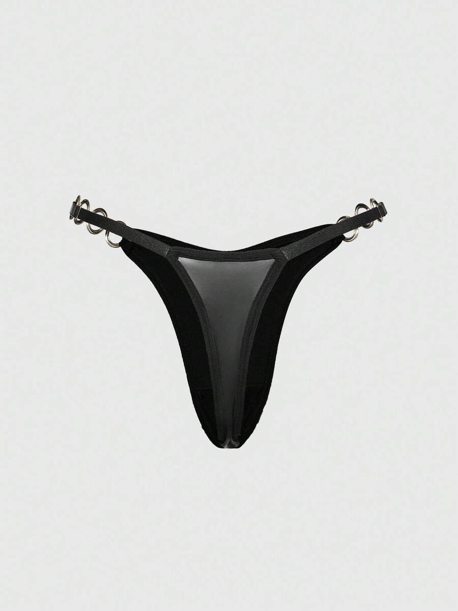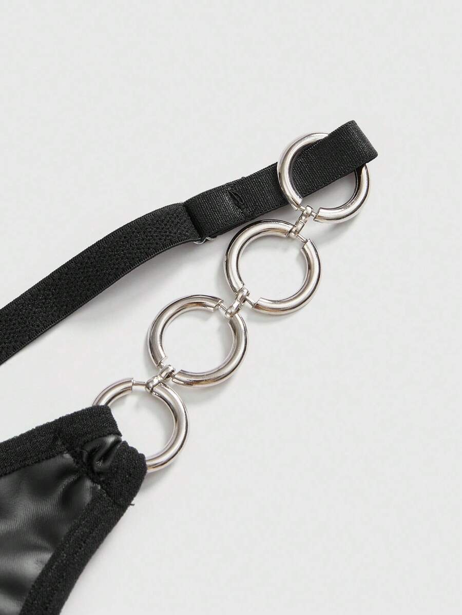 Grunge Punk Tanga de mujer de estilo punk oscuro con anillo de metal