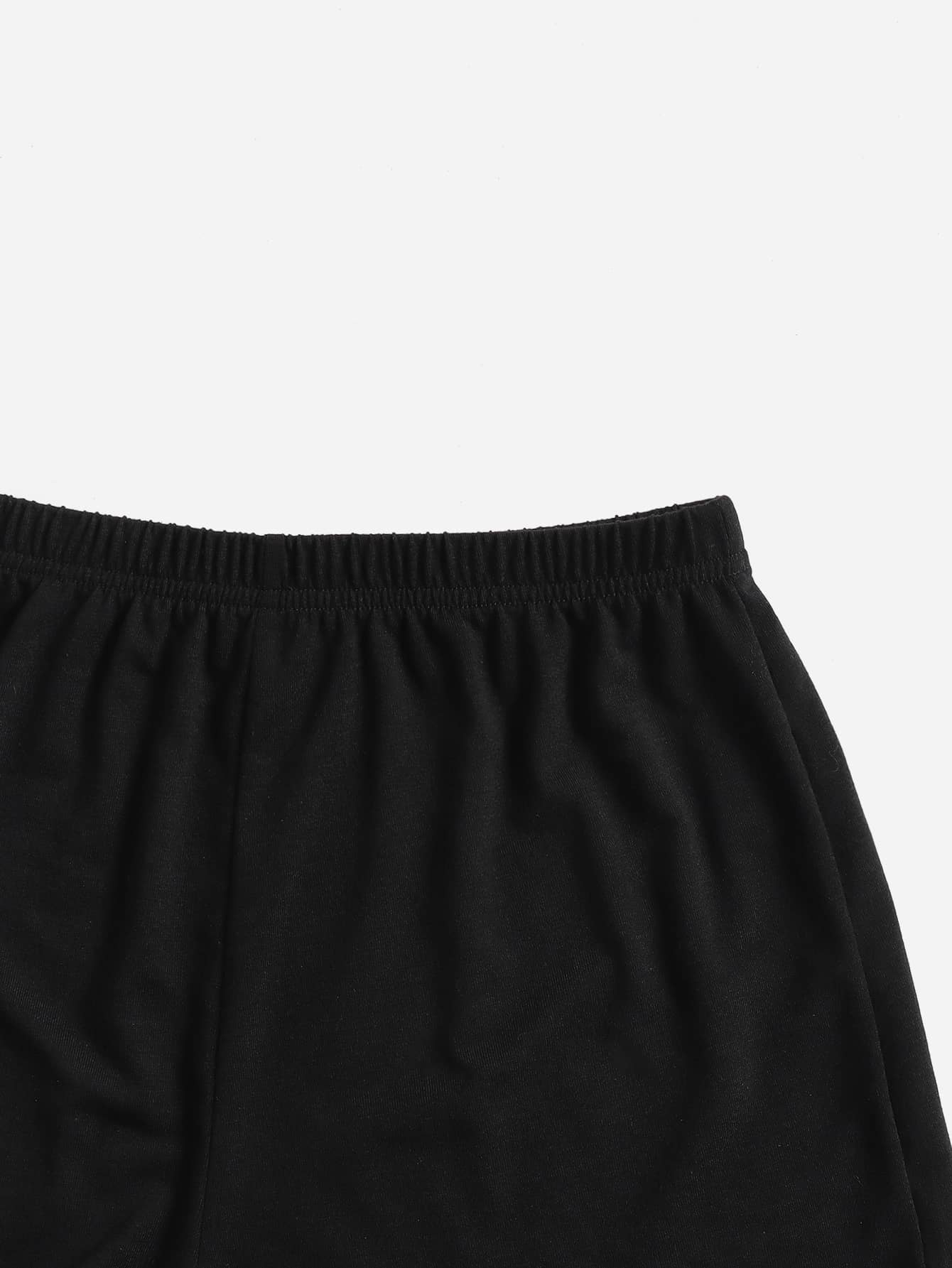 Grunge Punk Conjunto de ropa de hogar con parte superior estampada con retrato dimensional de manga corta y pantalones cortos de unicolor