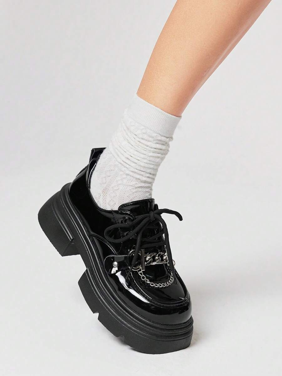 Grunge Punk Zapatos de estilo gótico europeo y americano, recubierto Maria con remaches negros de metal y cordones, Plataforma con suela gruesa, Tipo Oxford para mujeres
