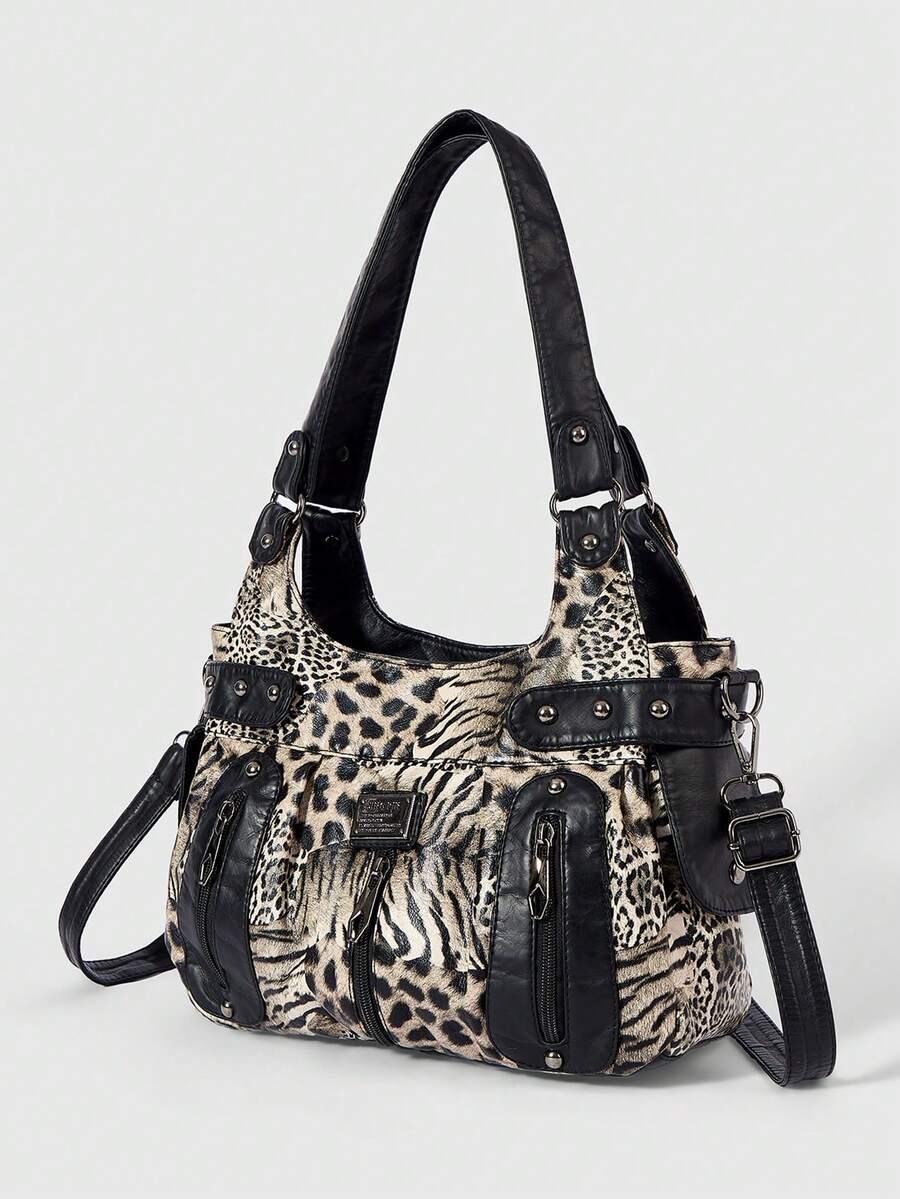 Grunge Punk Bolso de mujer estilo casual con estampado de leopardo, bolso de hombro retro, bolso de compras, bolso de mujer para ir al trabajo, bolso de mujer con estilo punk