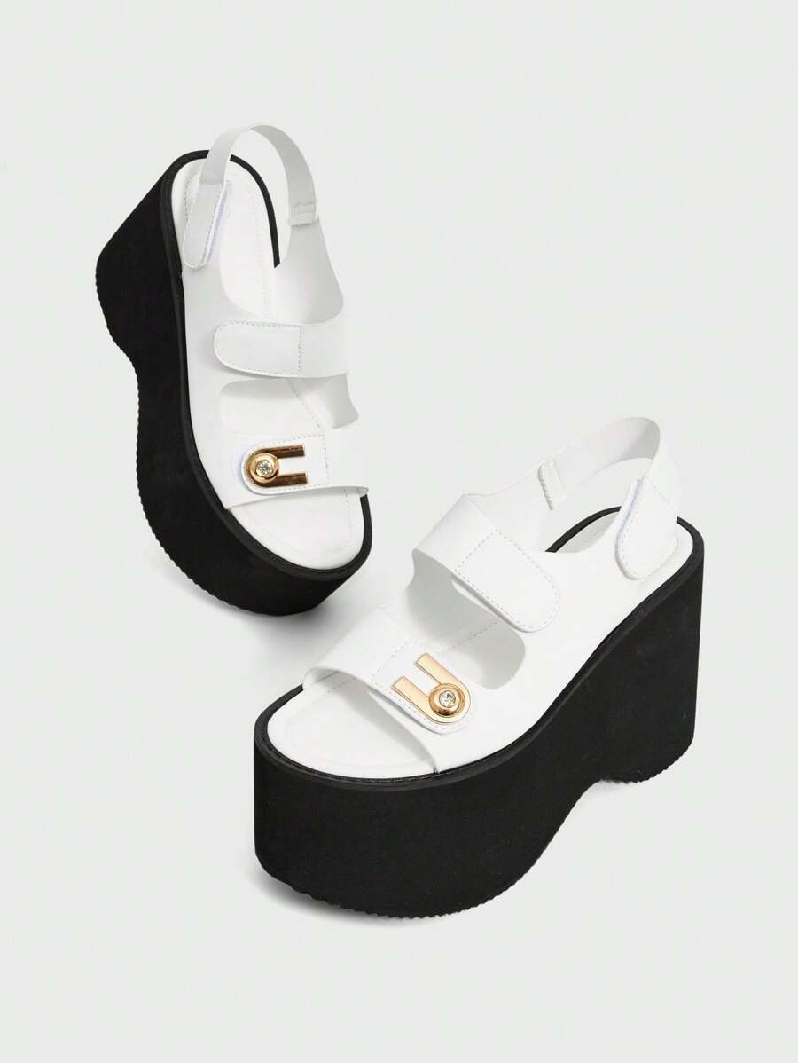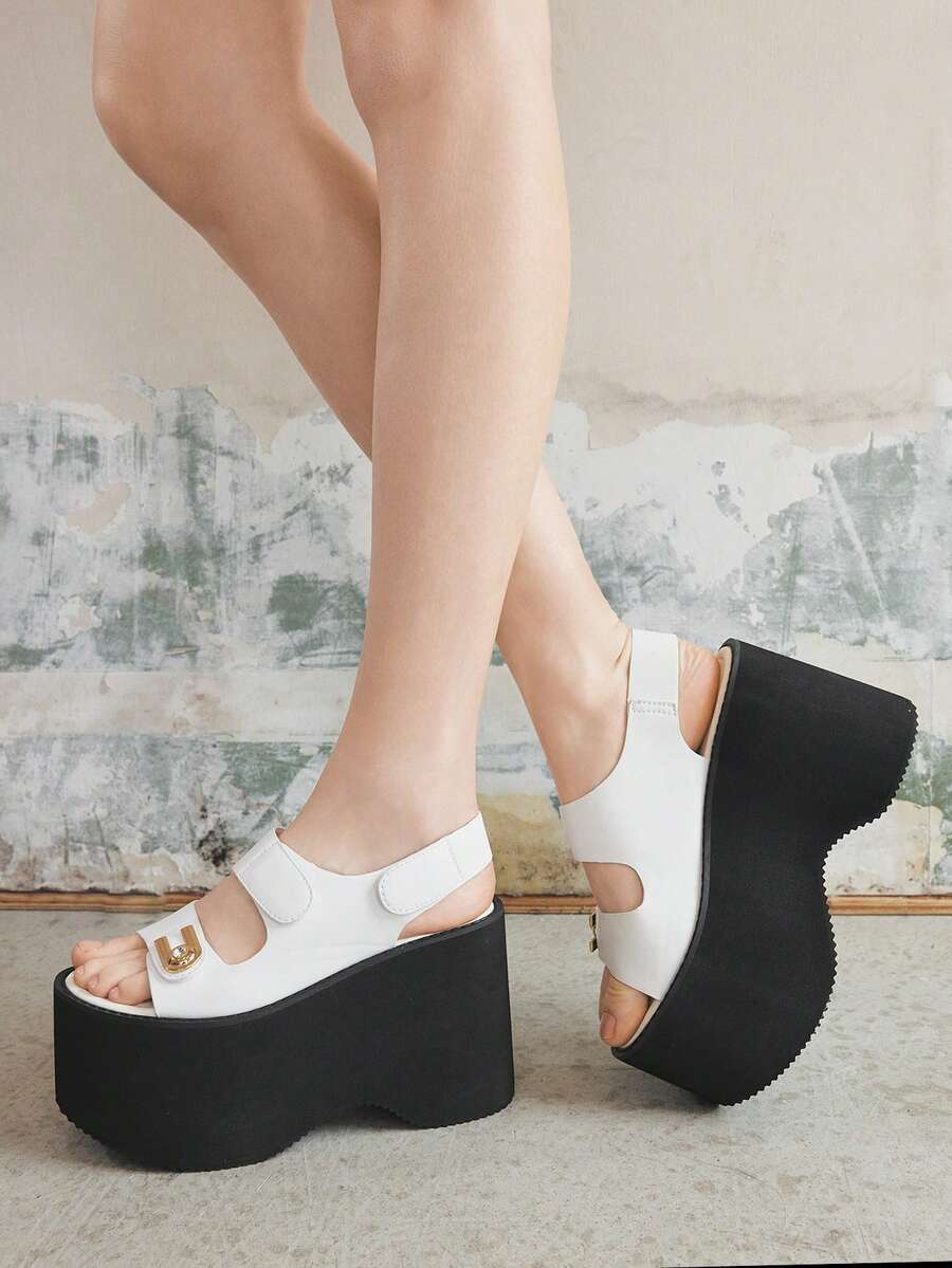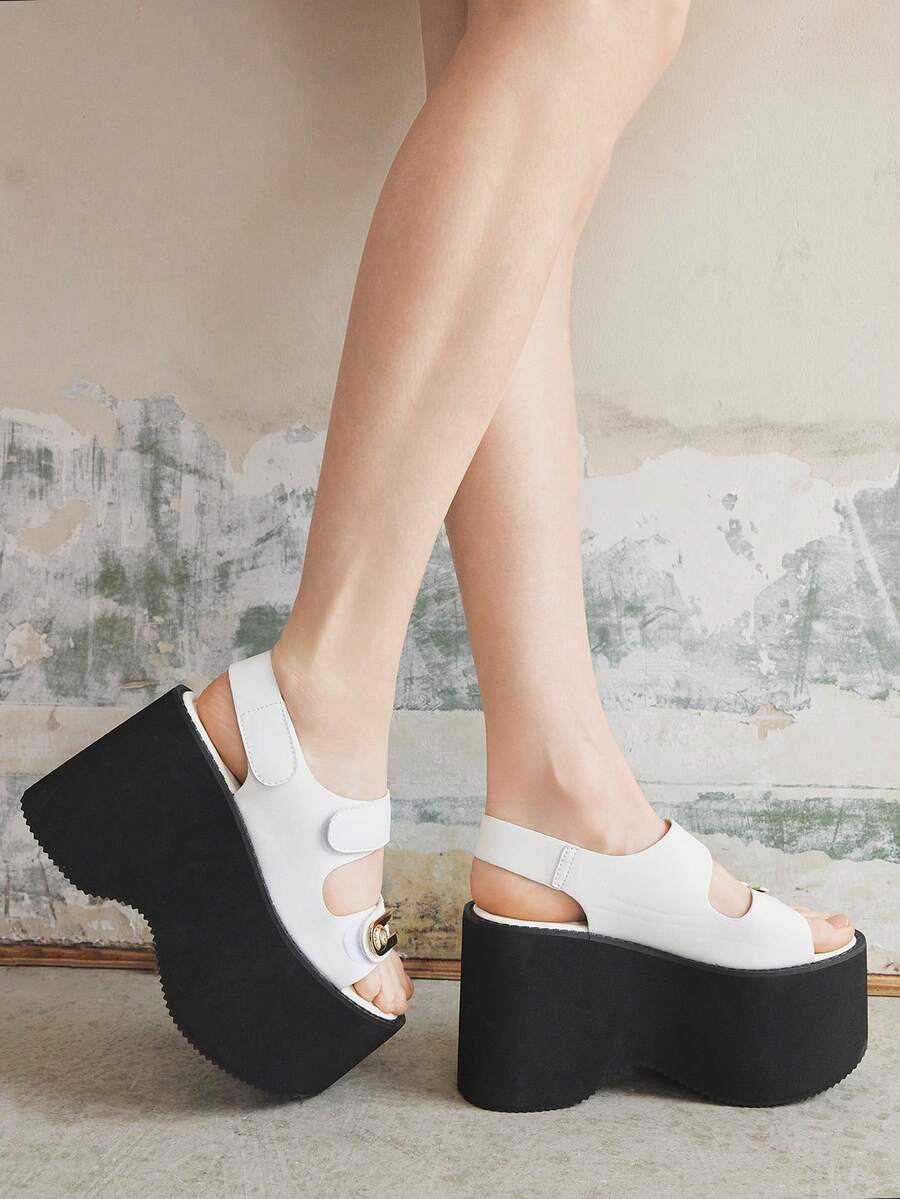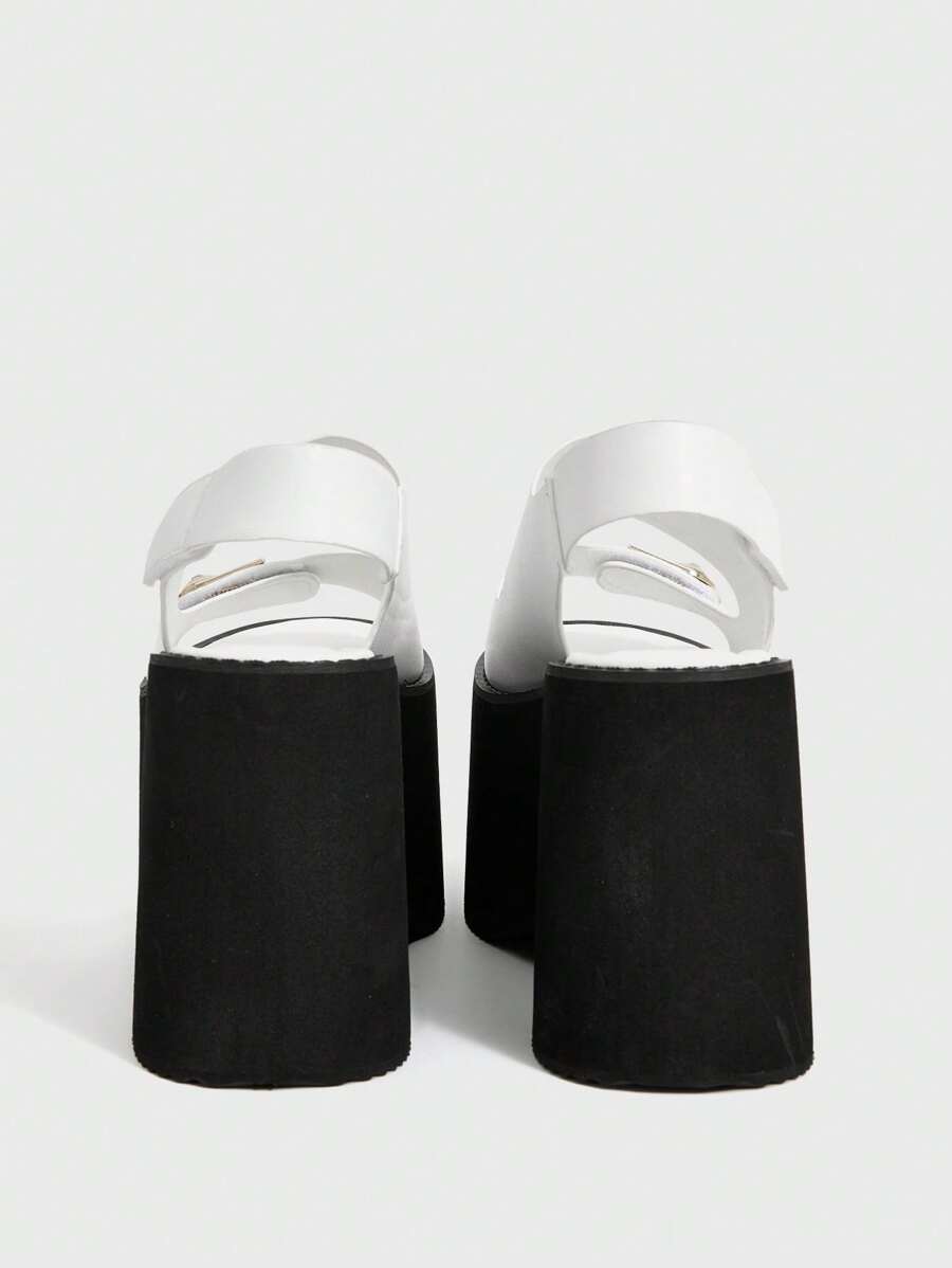 Grunge Punk Sandalias de mujer con tacón súper alto y suela gruesa, diseño con hebilla de strass en forma de U, correa doble, sin talón, con cierre de y diseño de punta abierta calada