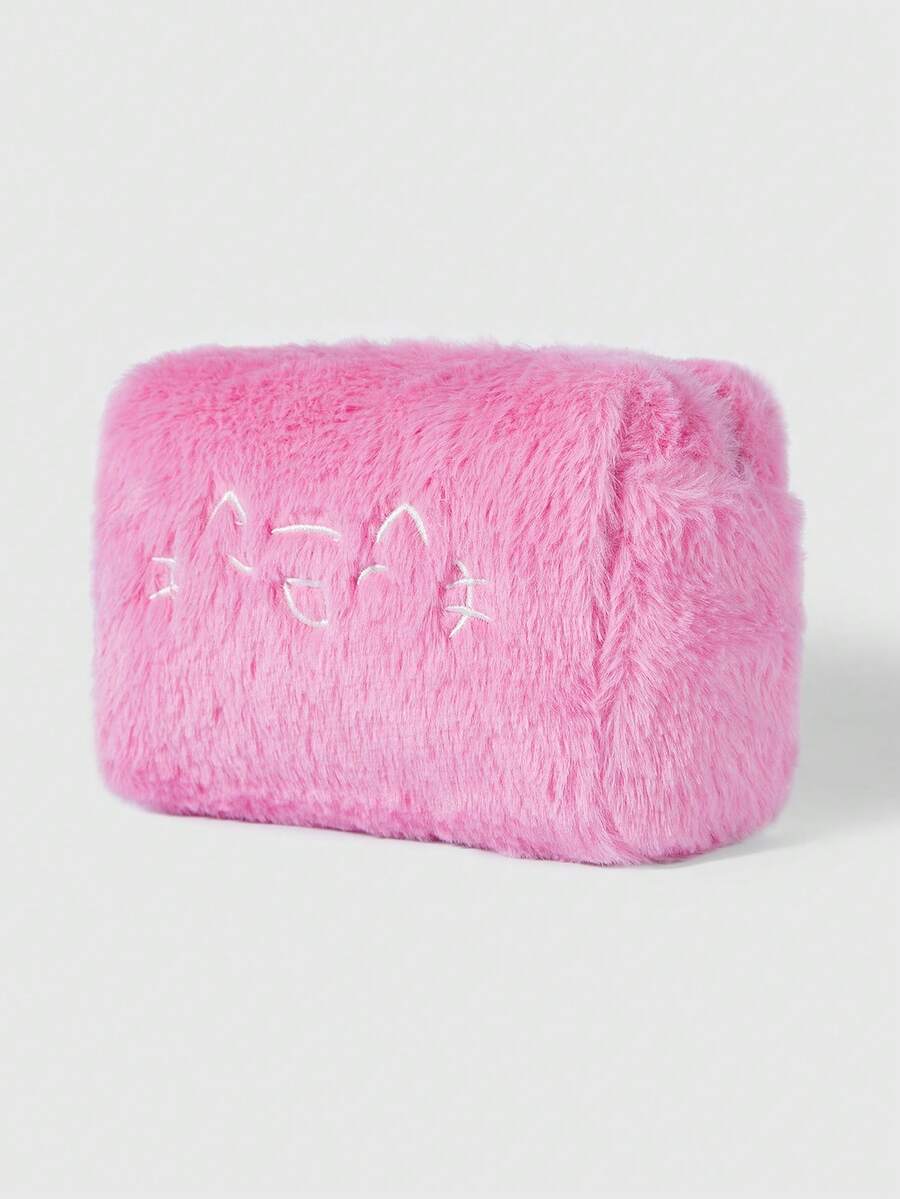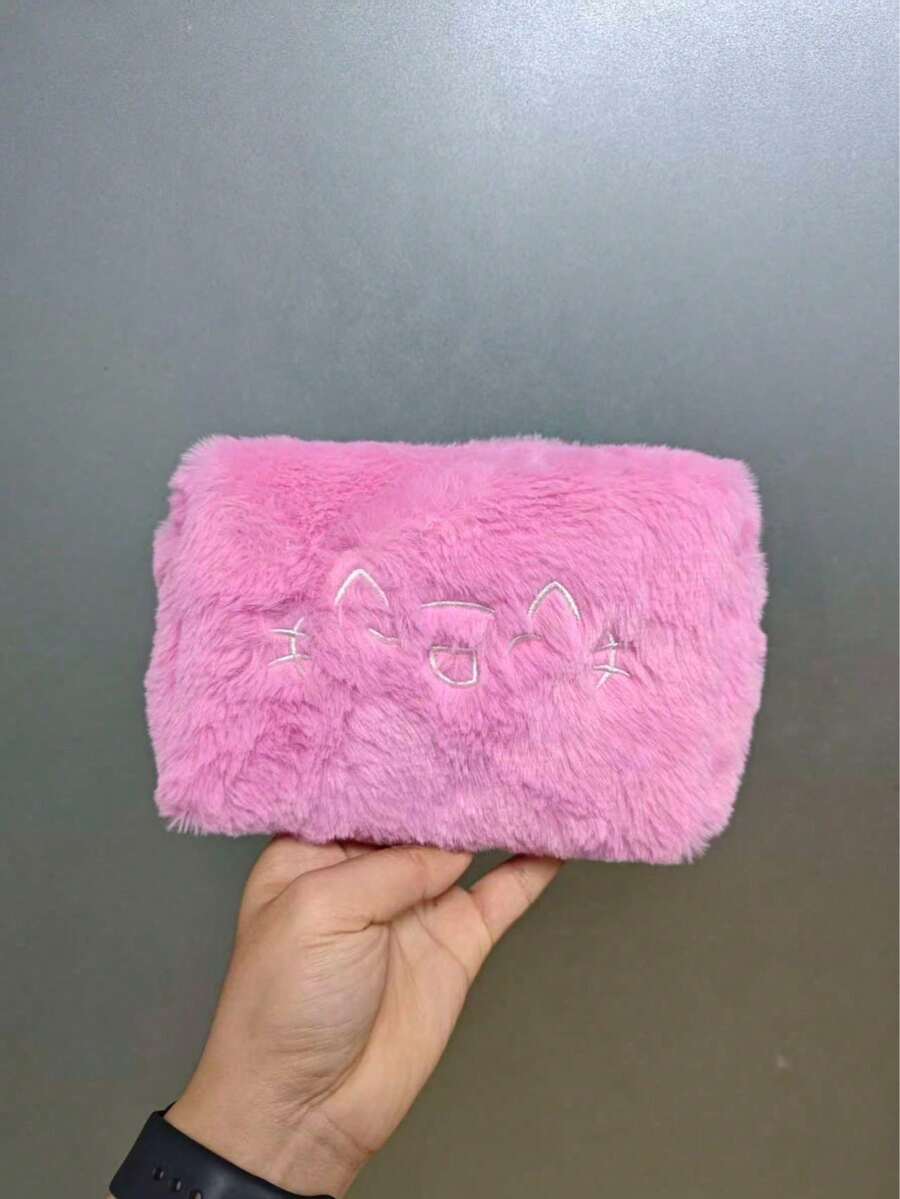 Grunge Punk Embrague esponjoso con bordado de gato lindo y de moda