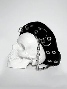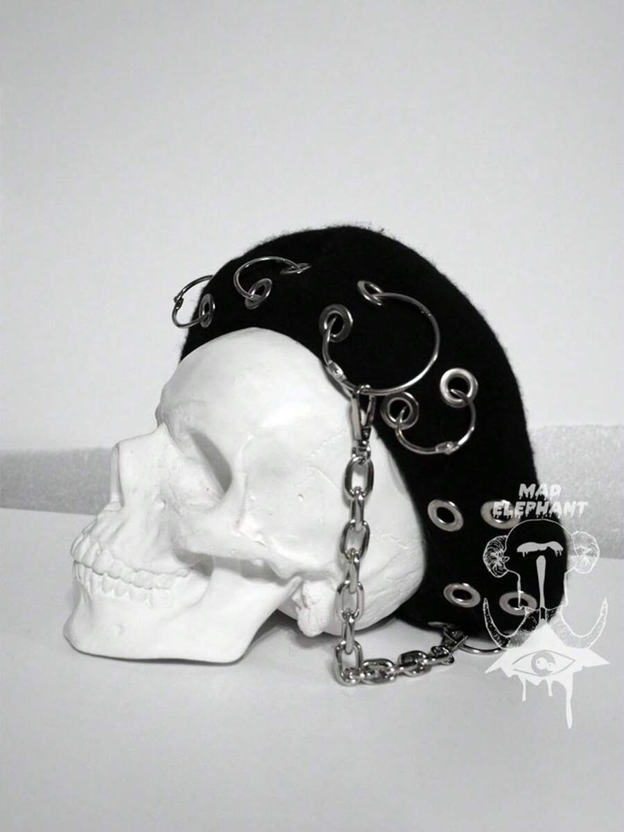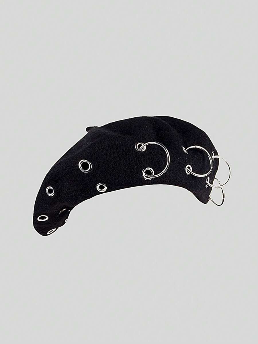 Grunge Punk Boina De Moda De Estilo Punk Para Mujeres Con Decoración De Anillo De Hierro Y Cadena