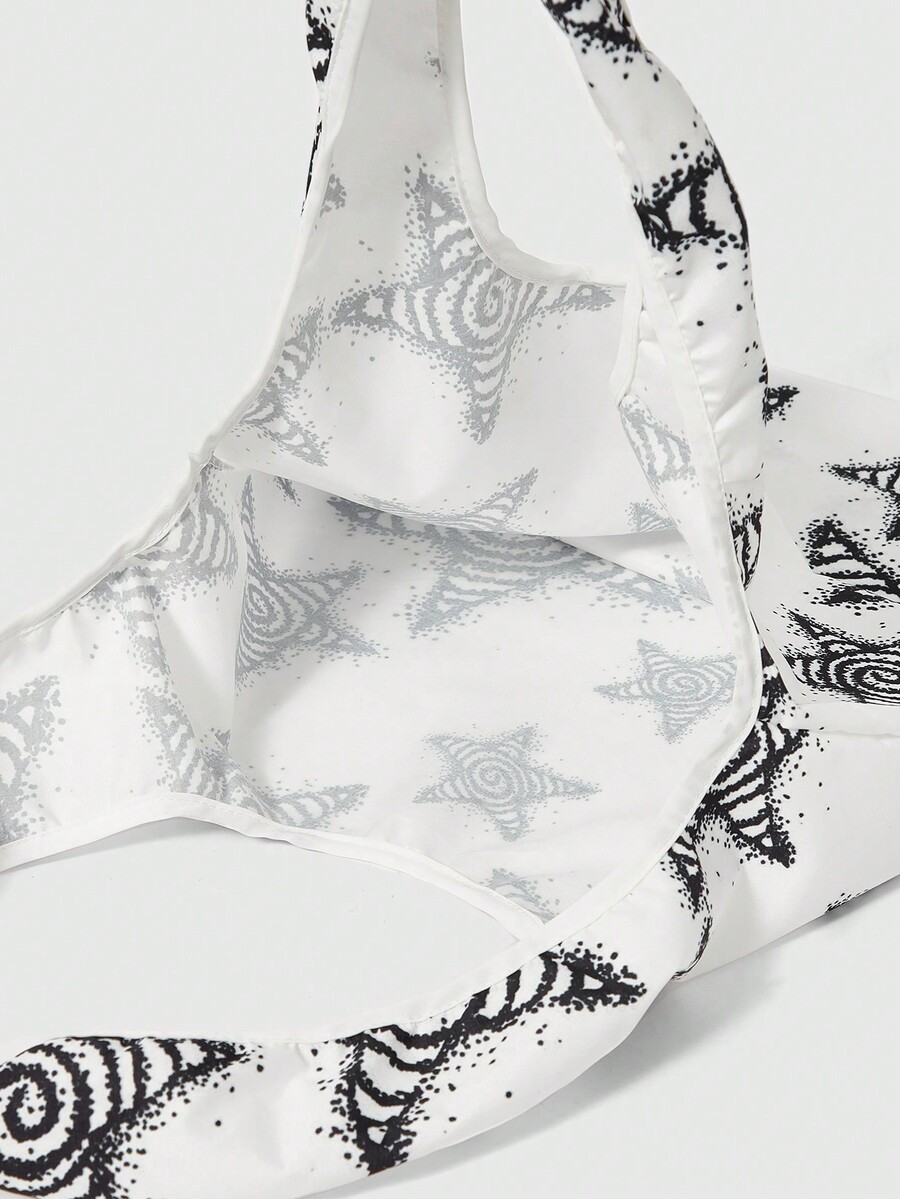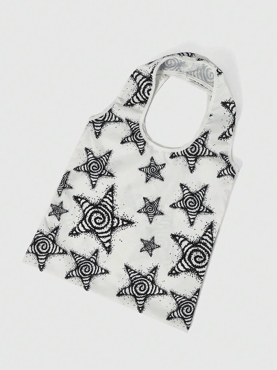 Grunge Punk Bolsa de compras plegable amigable con impresión digital de diseño de pentágono disperso, bolso de mano grande de tendencia, mejores ideas de inspiración para el otoño