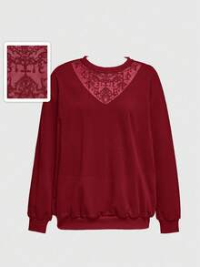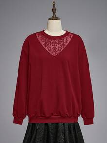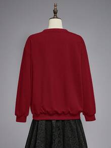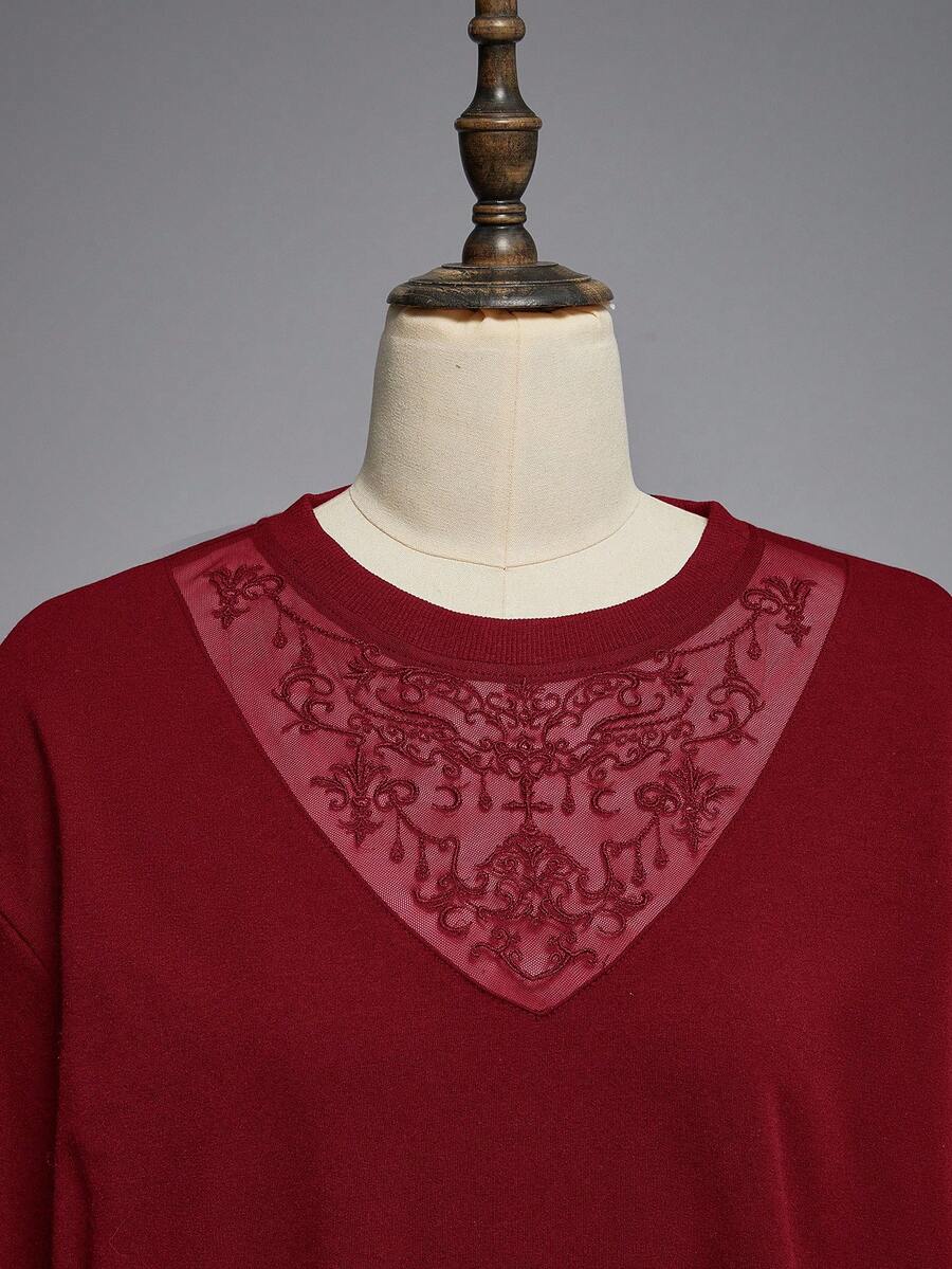 Grunge Punk Sudadera de cuello redondo, hombros caídos y manga larga con bordado de vid en estilo gótico para mujer