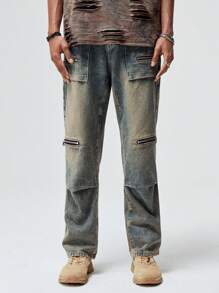 Grunge Punk Hombres Jeans cargo algodón con diseño de cremallera con bolsillo con solapa