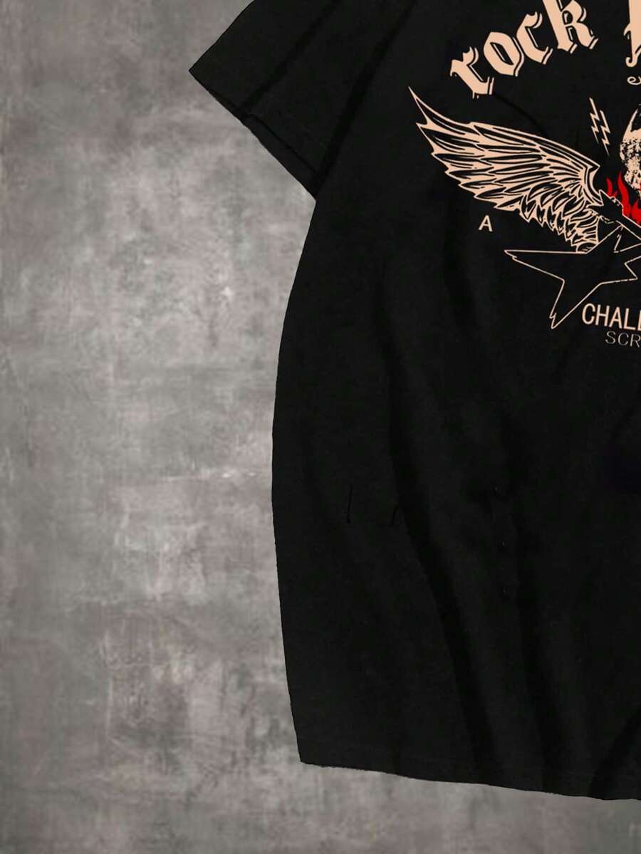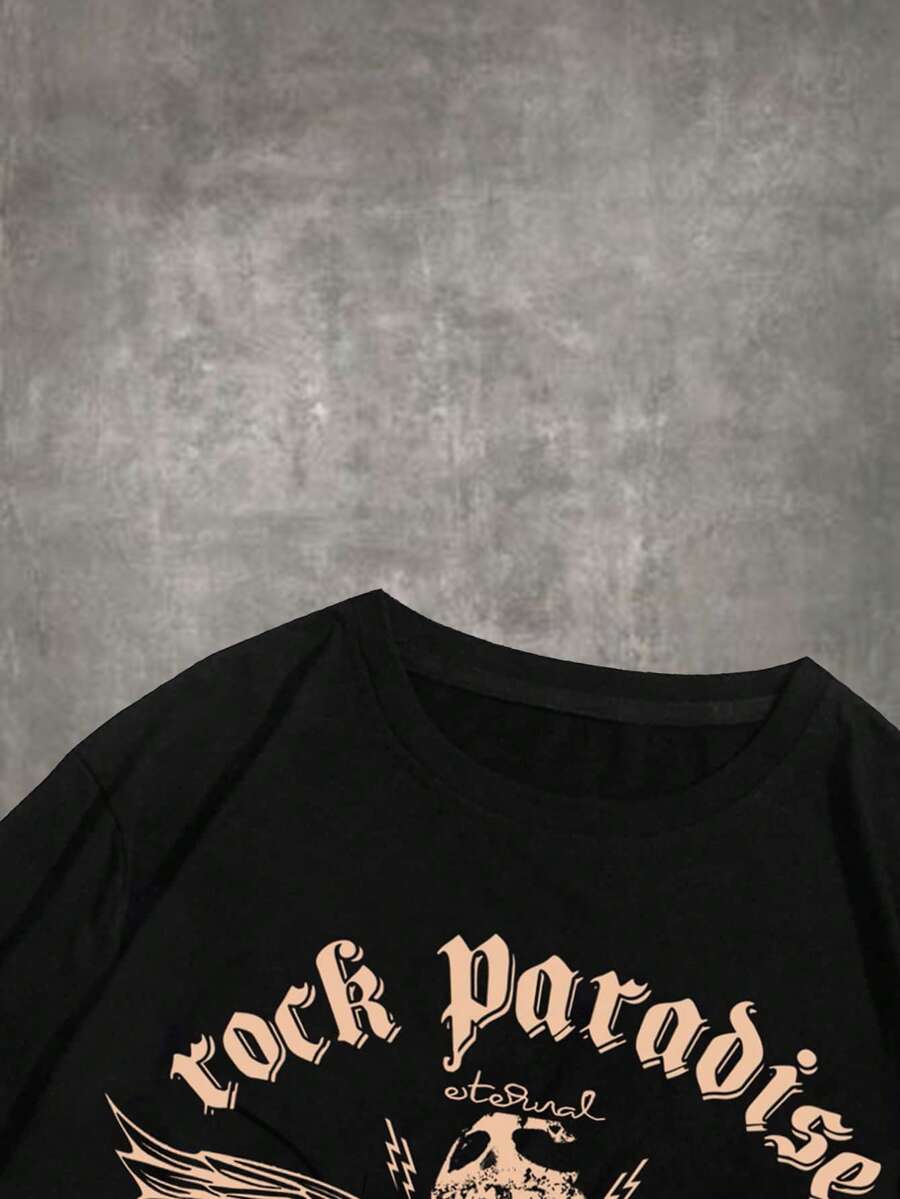 Grunge Punk Hombres Camiseta con letra de cráneo & ala con estampado