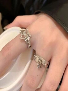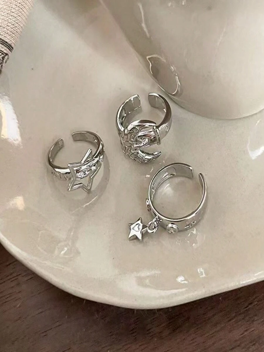 Grunge Punk Anillo de mujer con estrellas huecas, de estilo lujoso y de moda, personalizado y único, con final abierto y ajustable