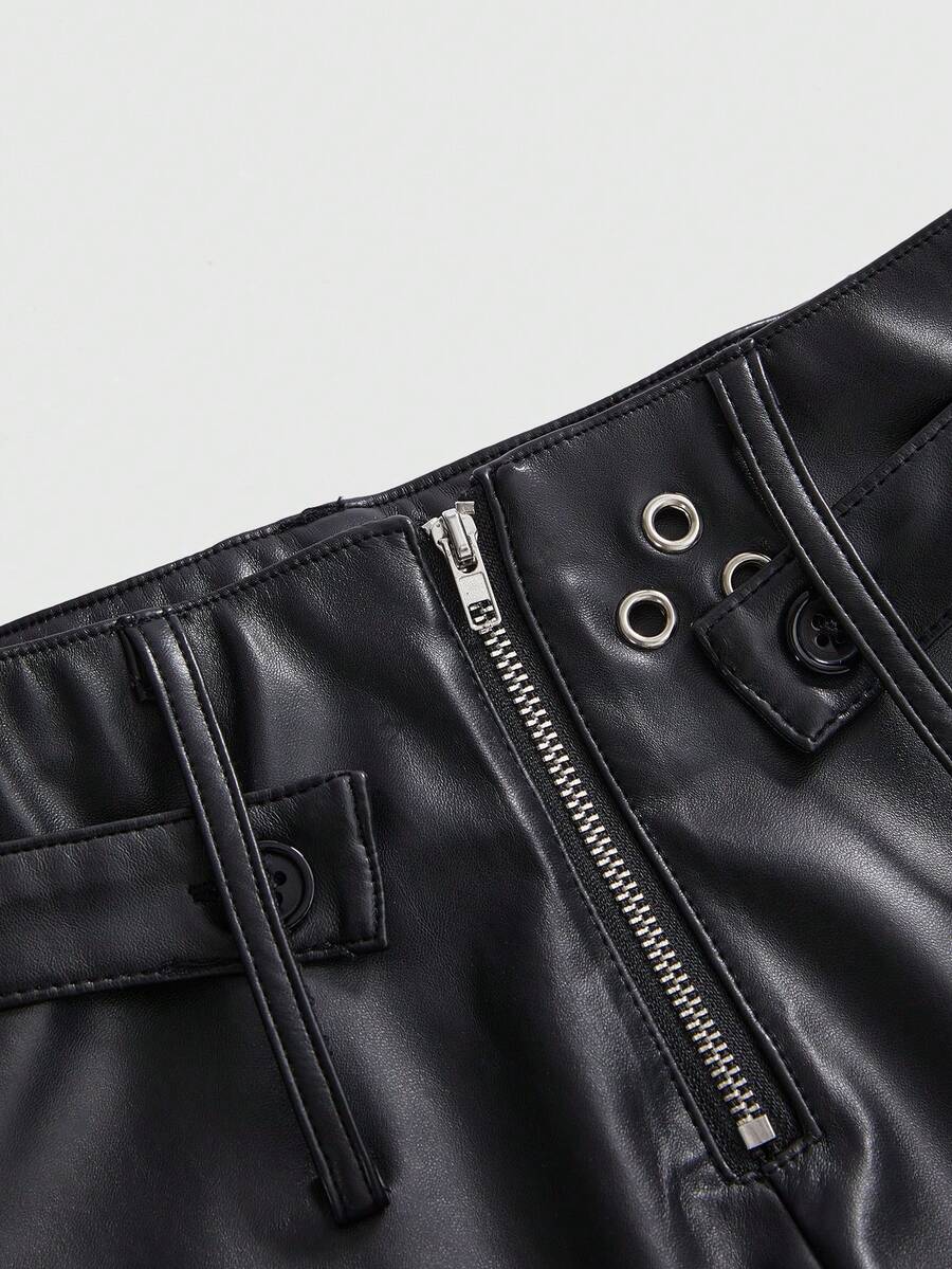 Grunge Punk Shorts mini de piel sintética de tiro ultra bajo, ajustados y con remaches metálicos, estilo punk coreano
