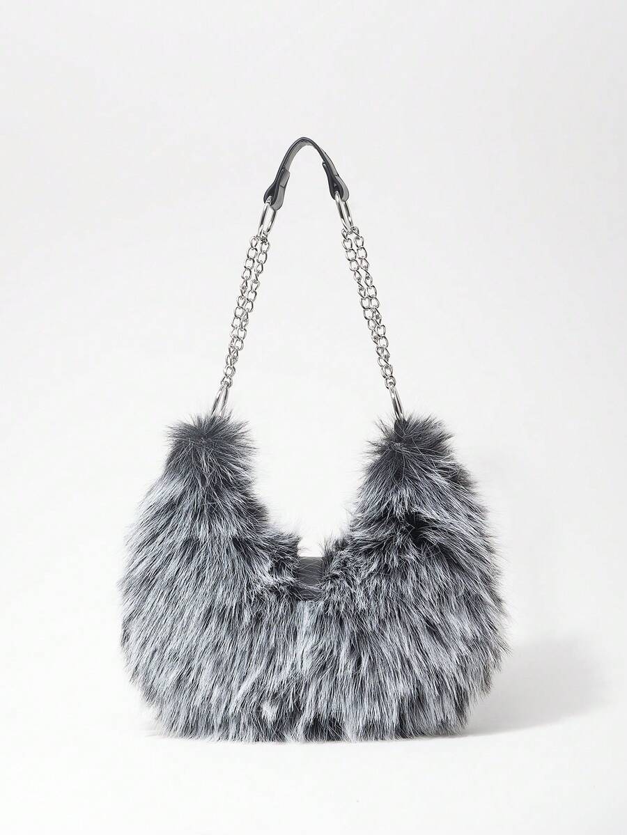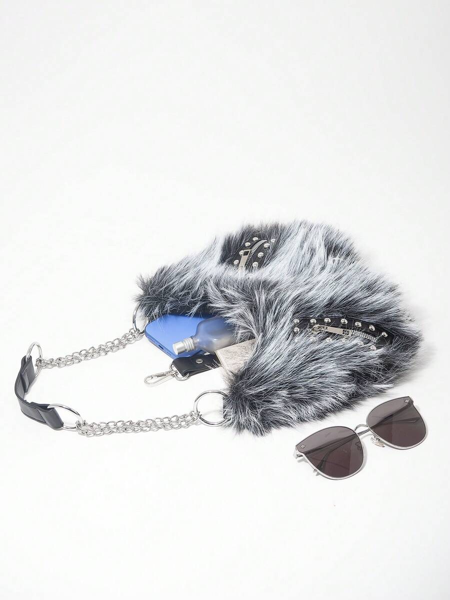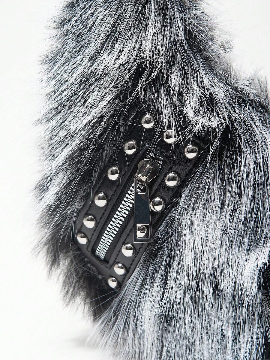 Grunge Punk Bolso de hombro para mujer, bolso hobo, de piel sintética, peludo, bolso de peluche, con remaches, de moda, personalizado, versátil, para la calle, dulce y fresco para chicas, chicas calientes, punk, Y2K, diario, otoño e invierno (patrón aleatorio)