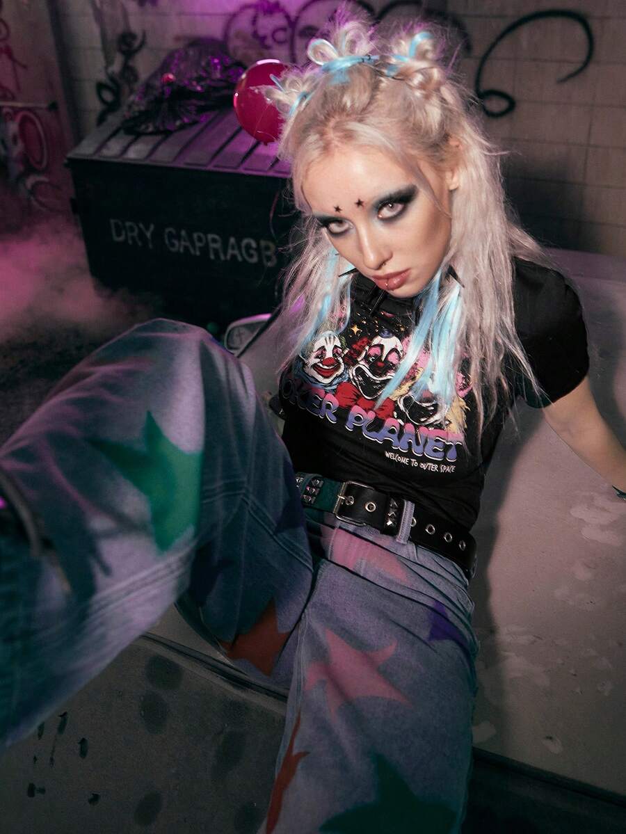 Grunge Punk Camiseta crop con letra payaso con estampado