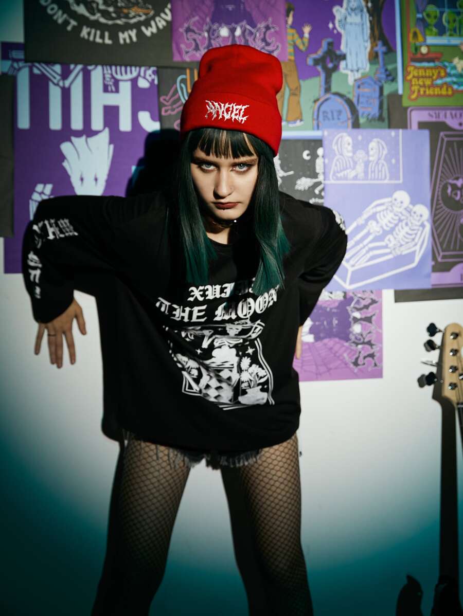 Grunge Punk Camiseta con letra con estampado de cráneo