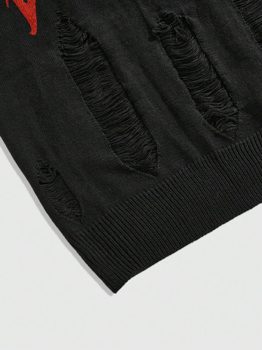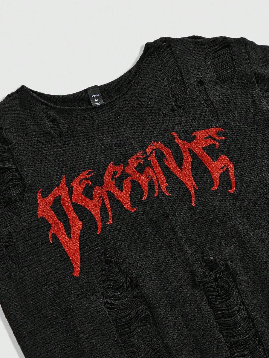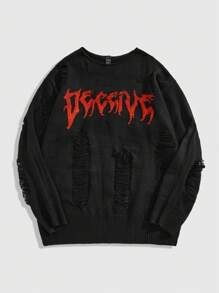 Grunge Punk Jersey casual cuello redondo con estampado de letras y rasgado para hombre