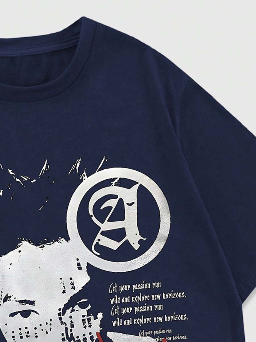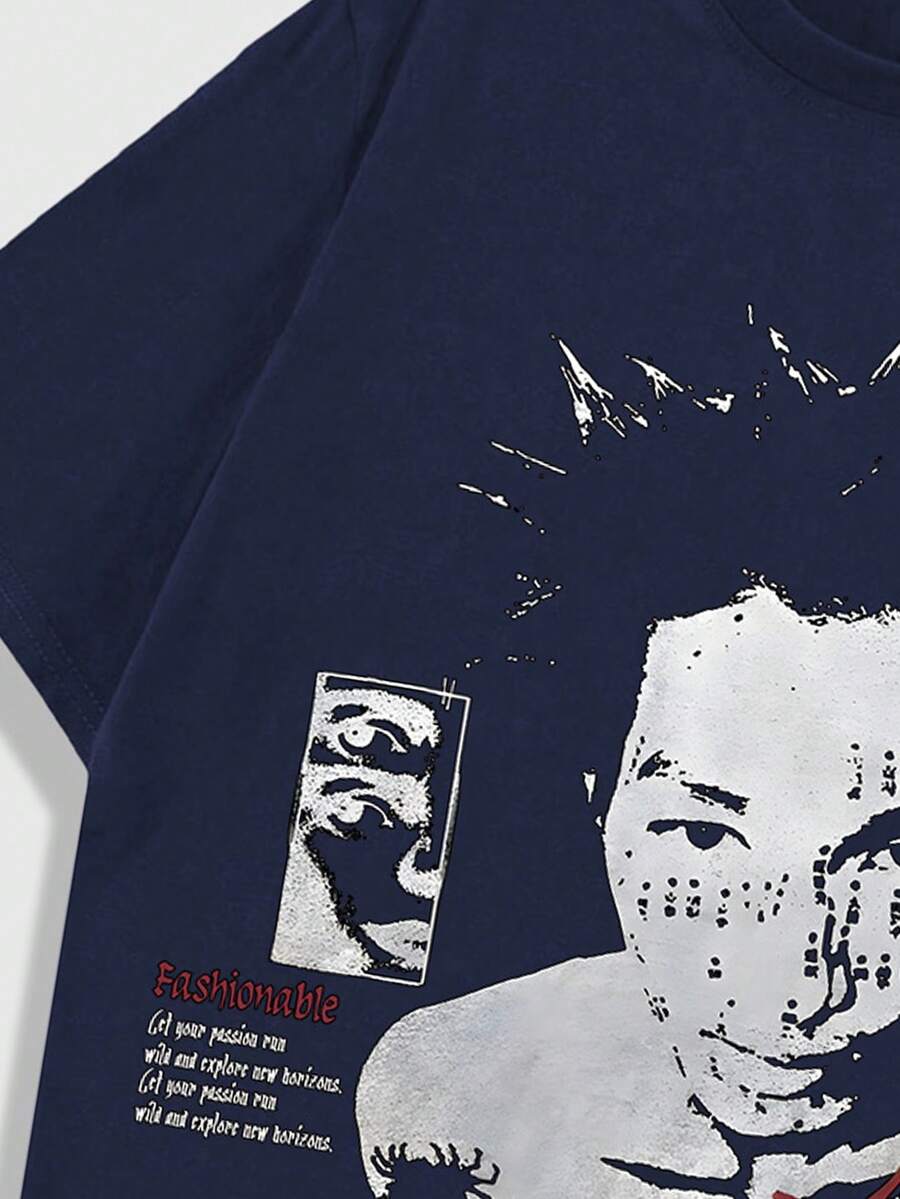 Grunge Punk Camiseta de manga corta casual de verano para hombres con estampado de dibujos animados y patrón con eslogan Y2k, escuela