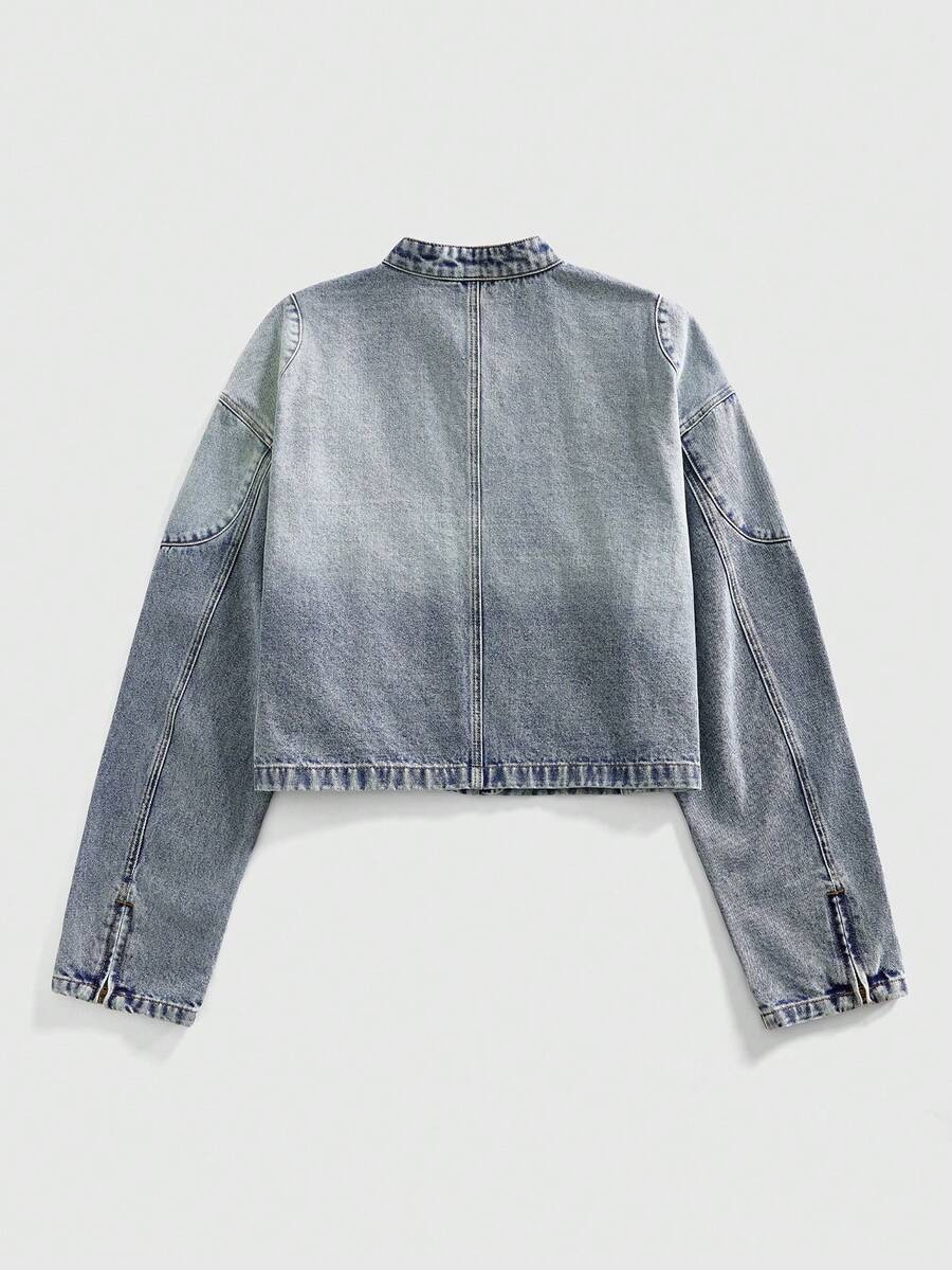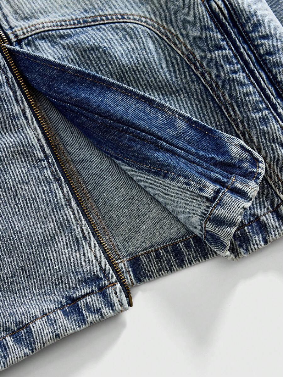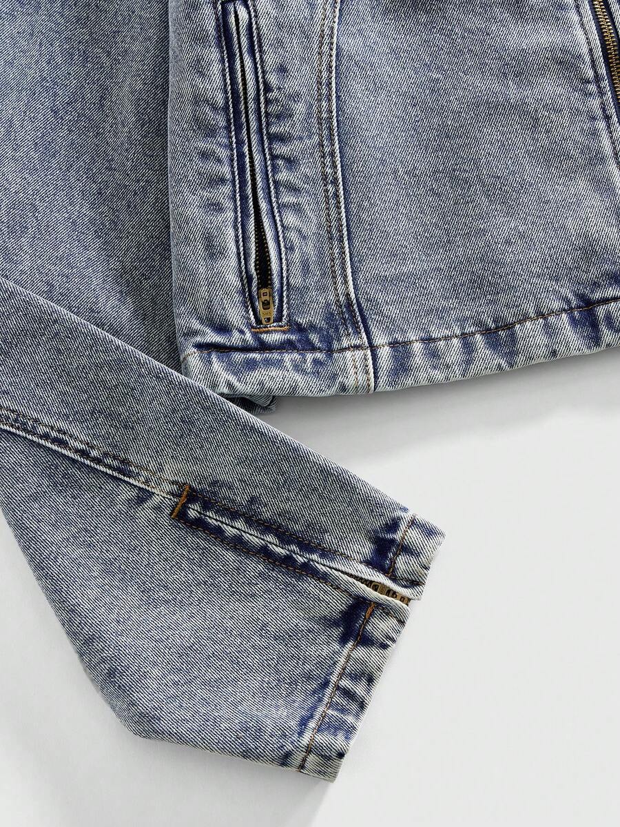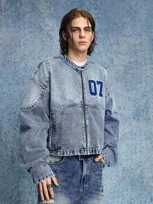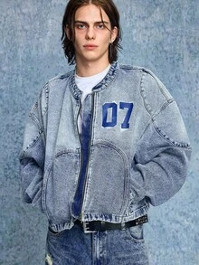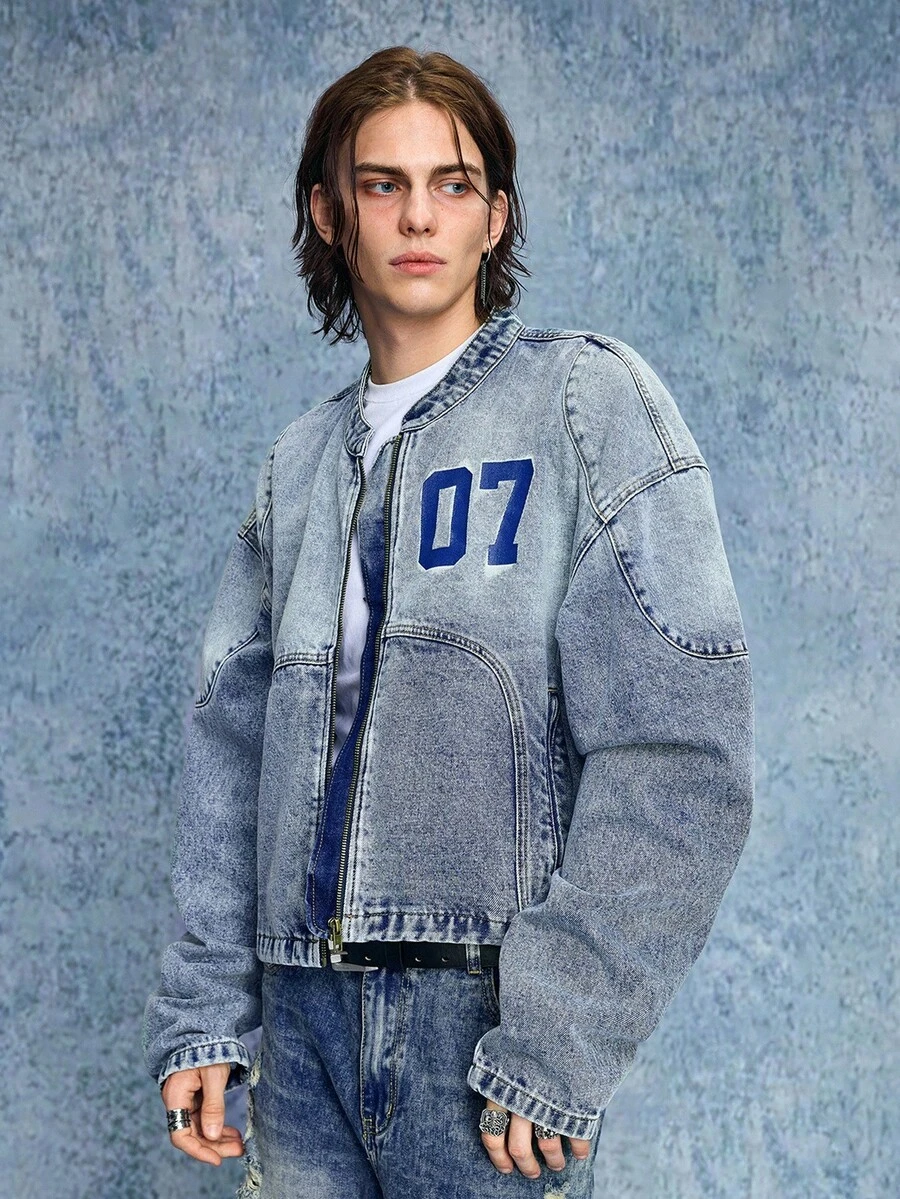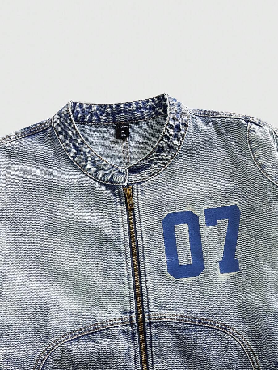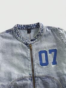 Grunge Punk Chaqueta vaquera casual con cremallera y diseño de números bordados, para otoño
