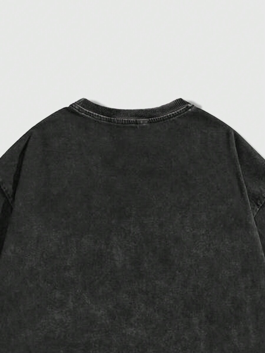 Grunge Punk Camiseta Informal Para Hombre Con Esqueleto E Impresión De Frases Con Hombros Caídos