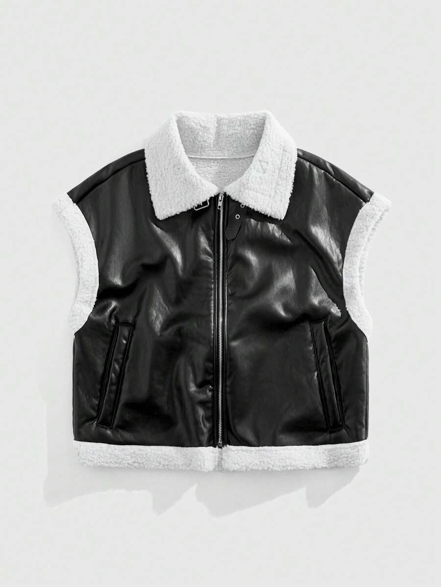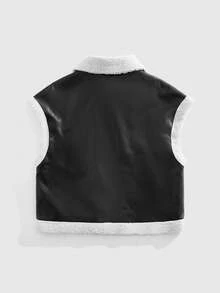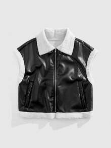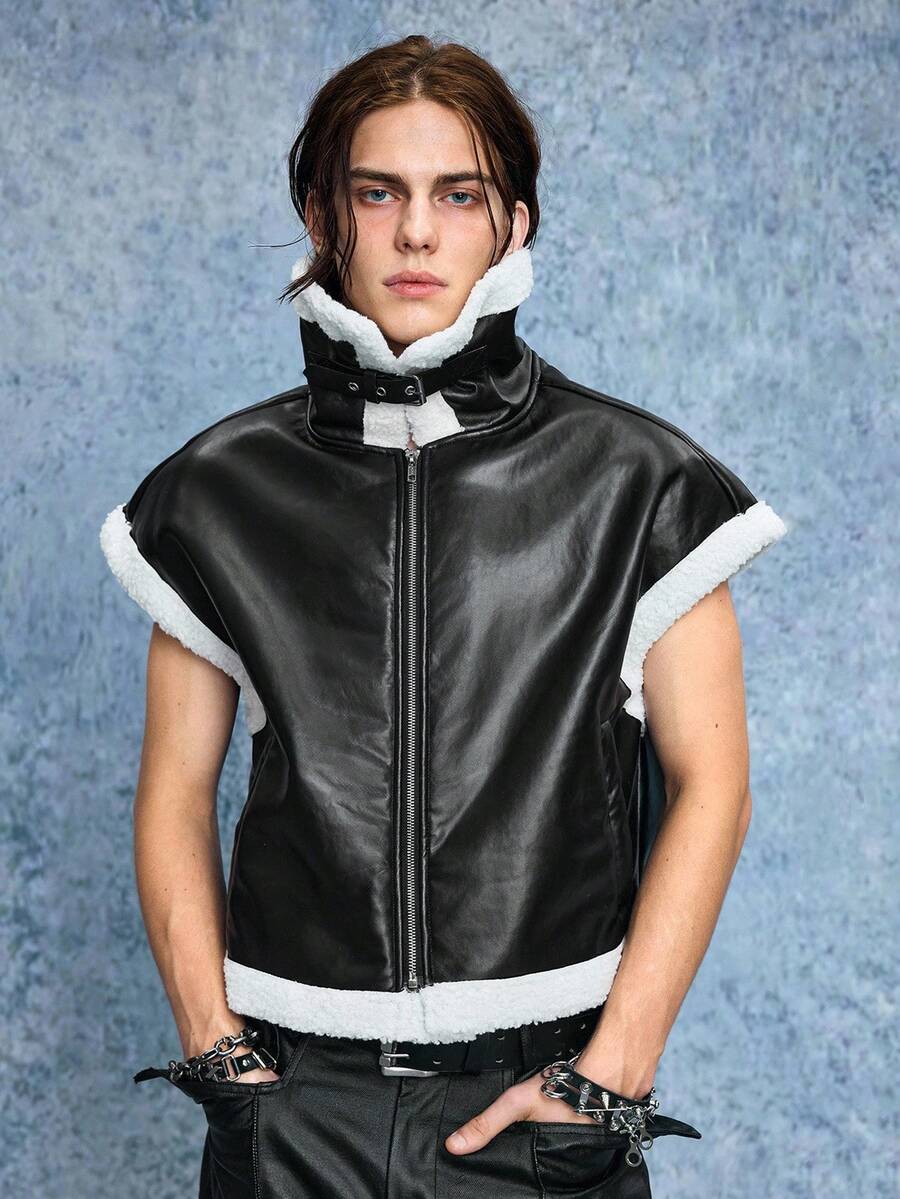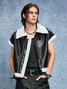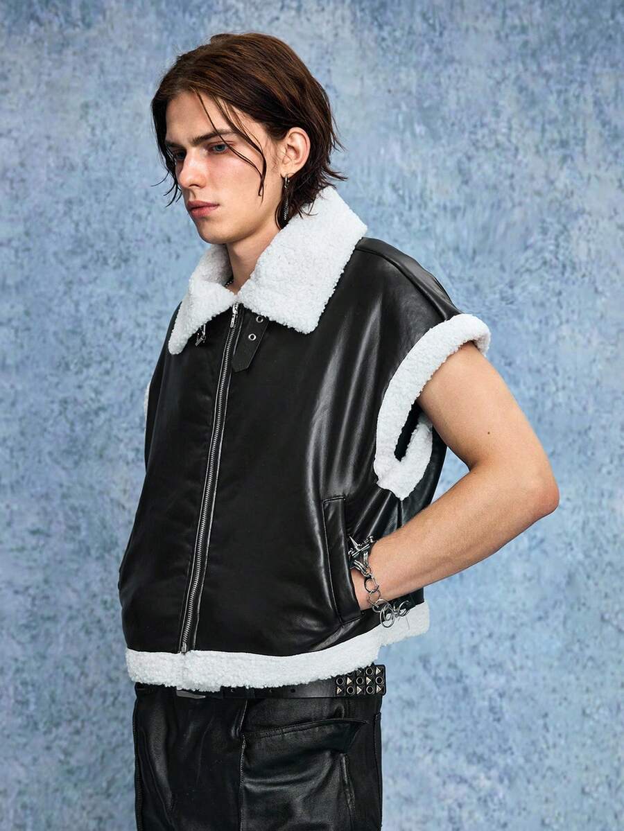 Grunge Punk Chaleco con cremallera de forro polar con ribete de contraste para hombre, de moda para otoño/invierno