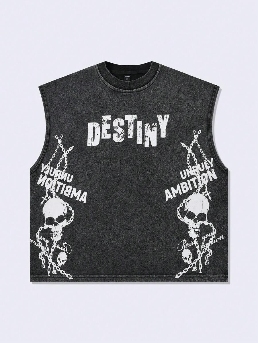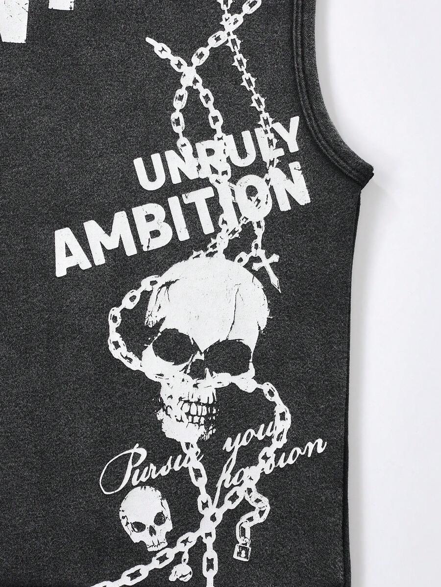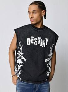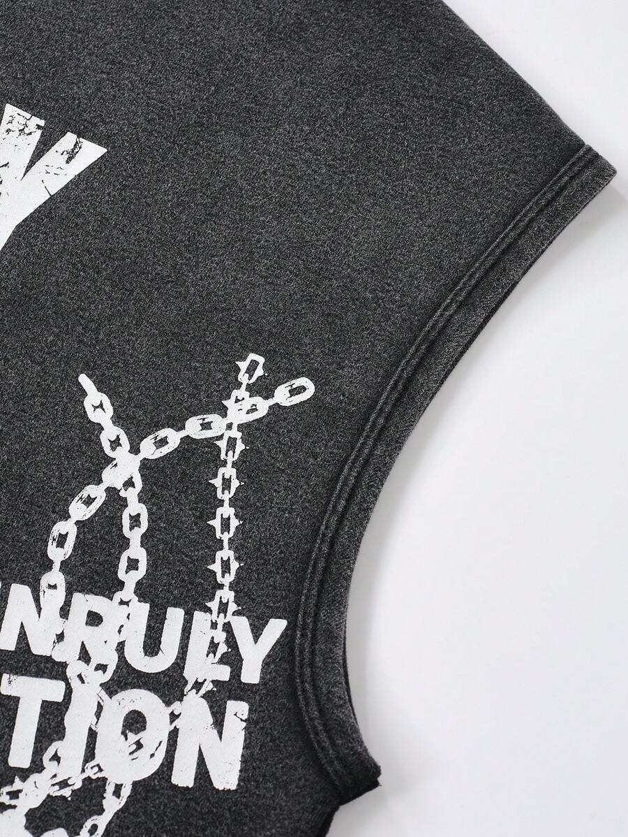 Grunge Punk Camiseta de tirantes recortada con estampado de letras lavada desgastada para hombres