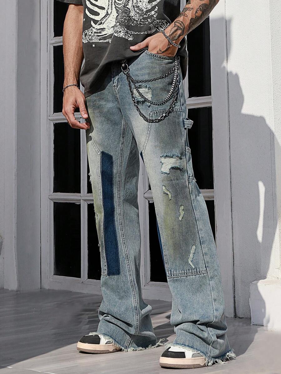 Street Life Jeans rectos de pierna simple para bolsillo de hombre, uso casual de todos los días