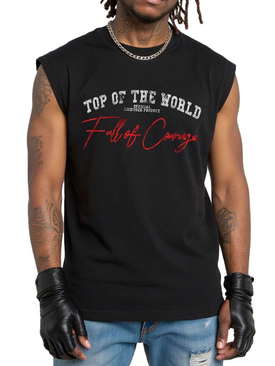 Street Life Camiseta de tirantes casual de cuello redondo con estampado de letras para hombre, para verano