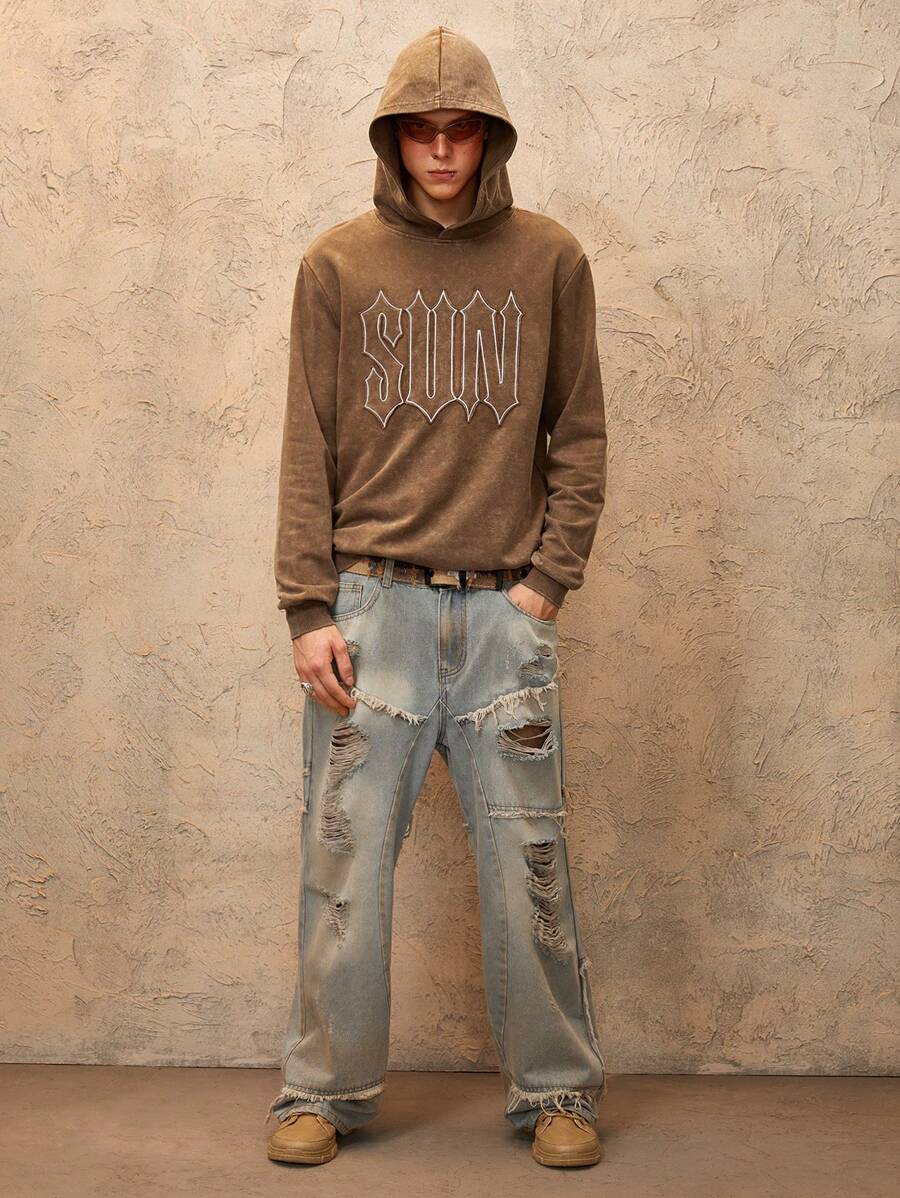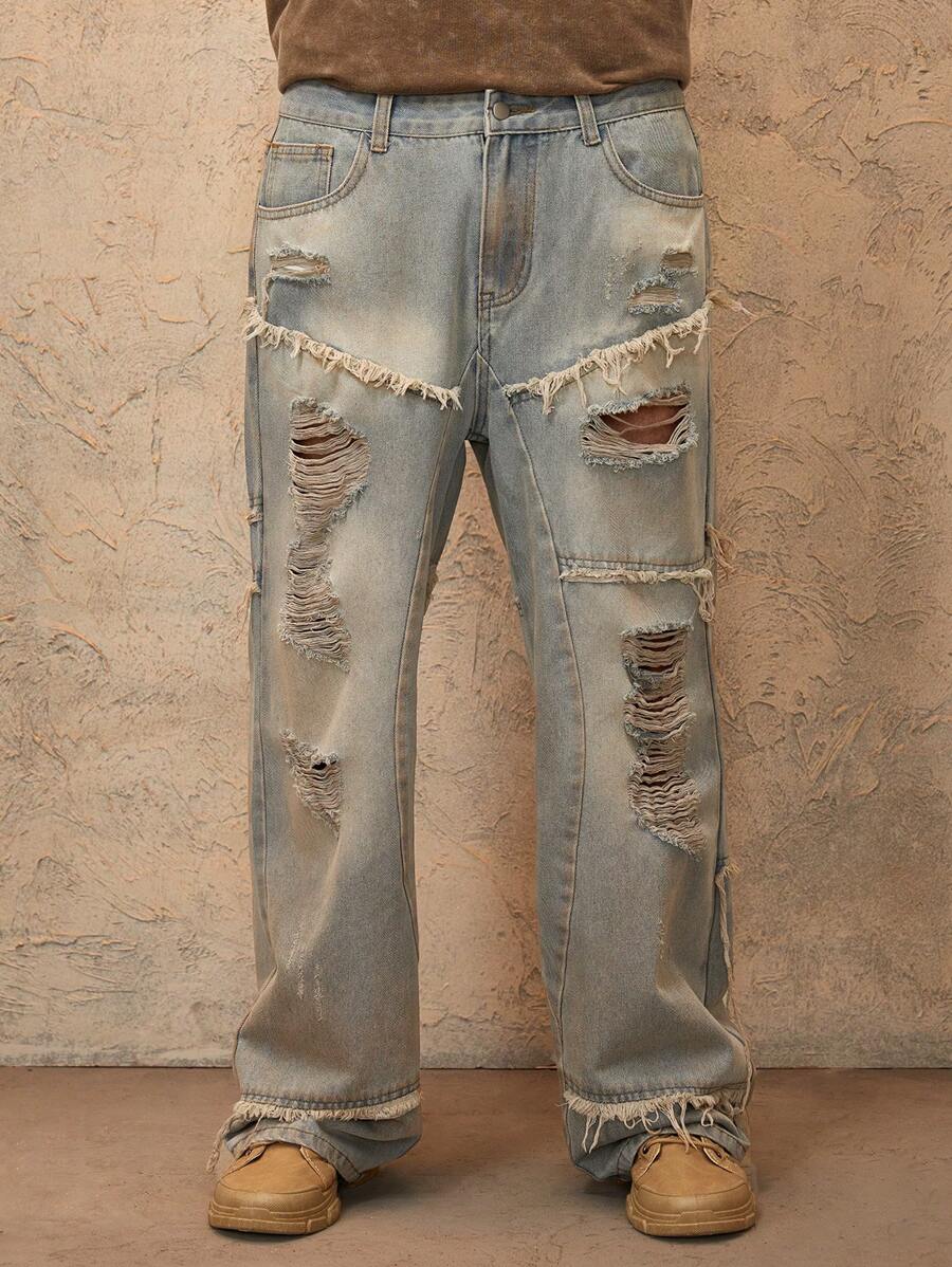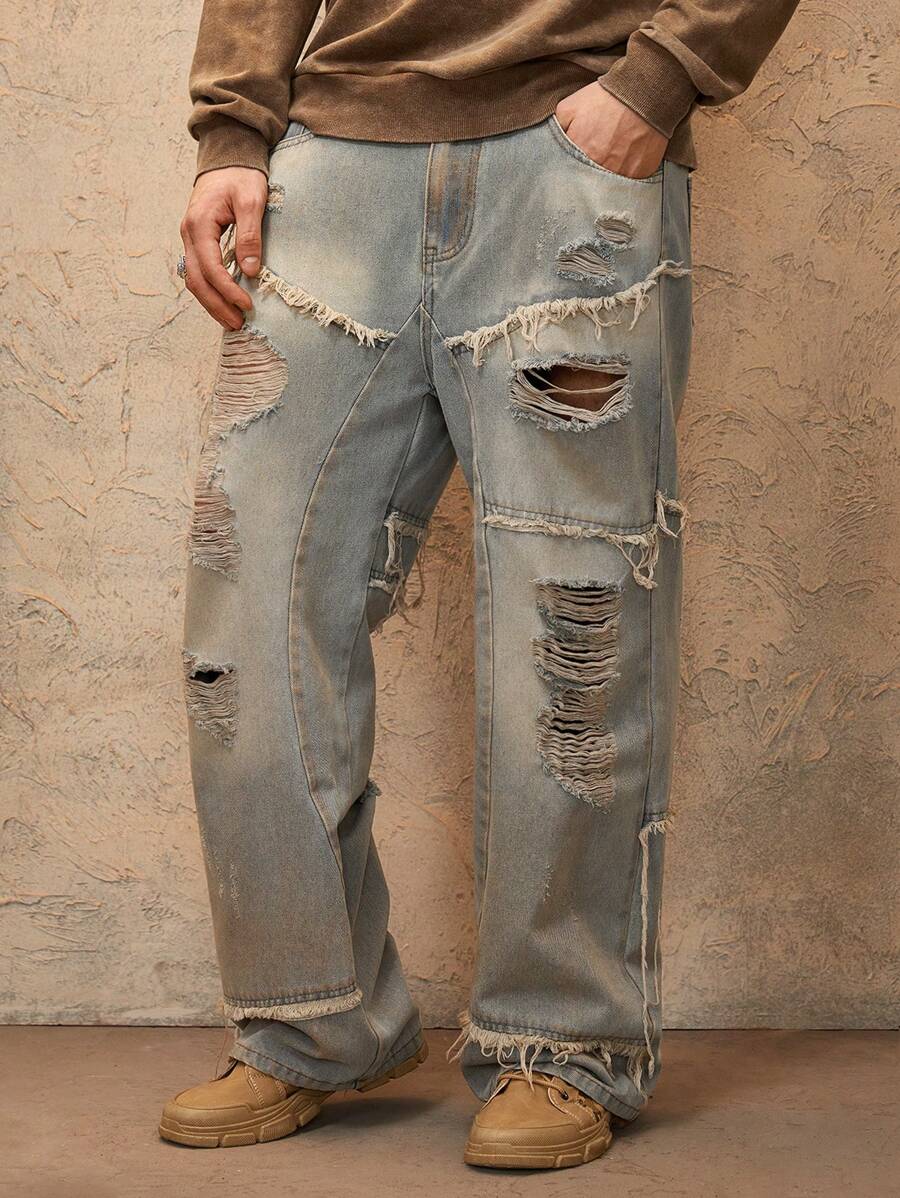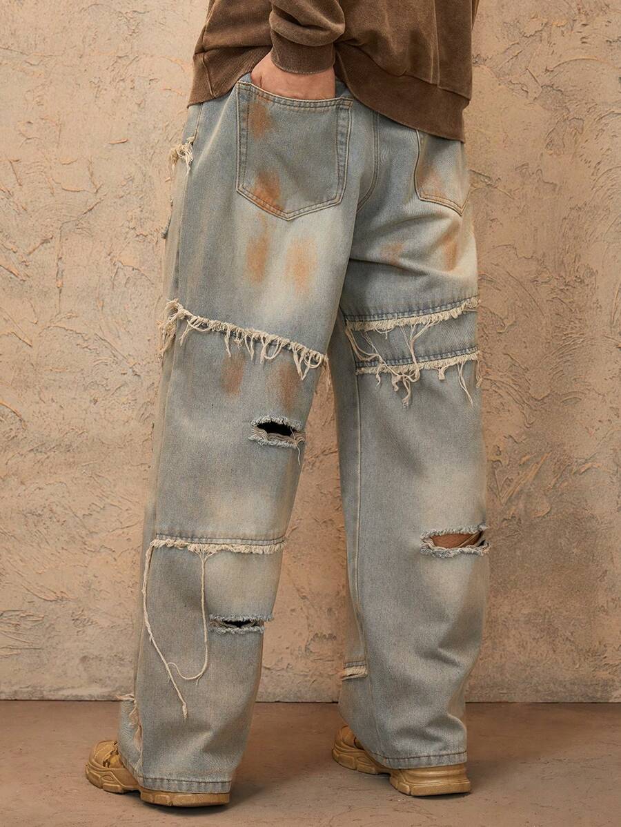 Grunge Punk Jeans casuales rectos sueltos con bolsillos laterales desgastados para hombres