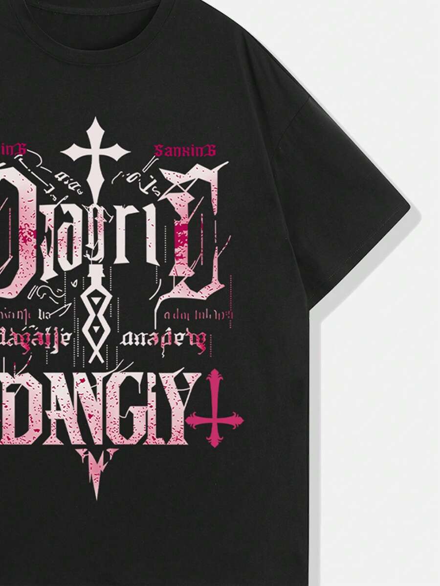 Grunge Punk Camiseta casual de manga corta para hombre de verano, estampada con diseño de cruz de letra
