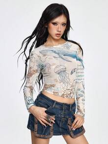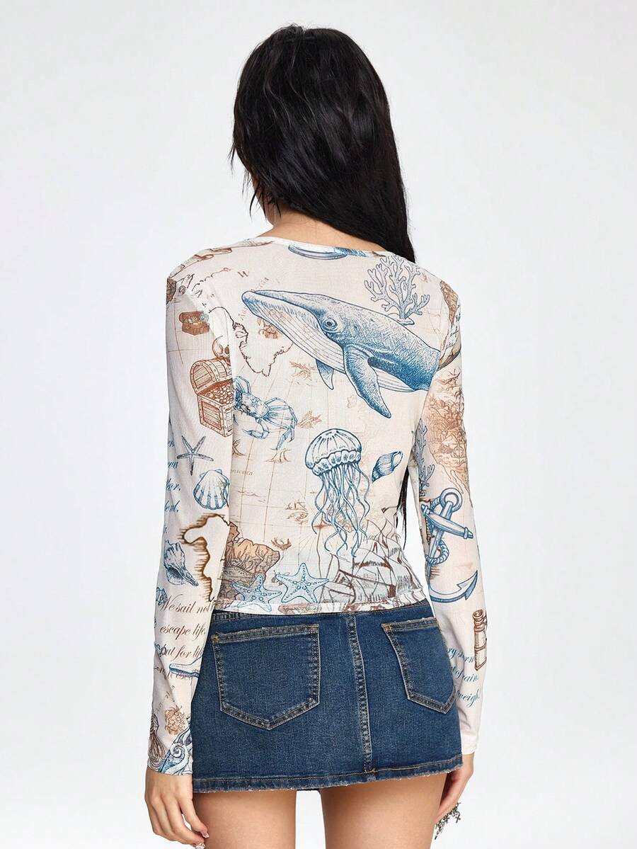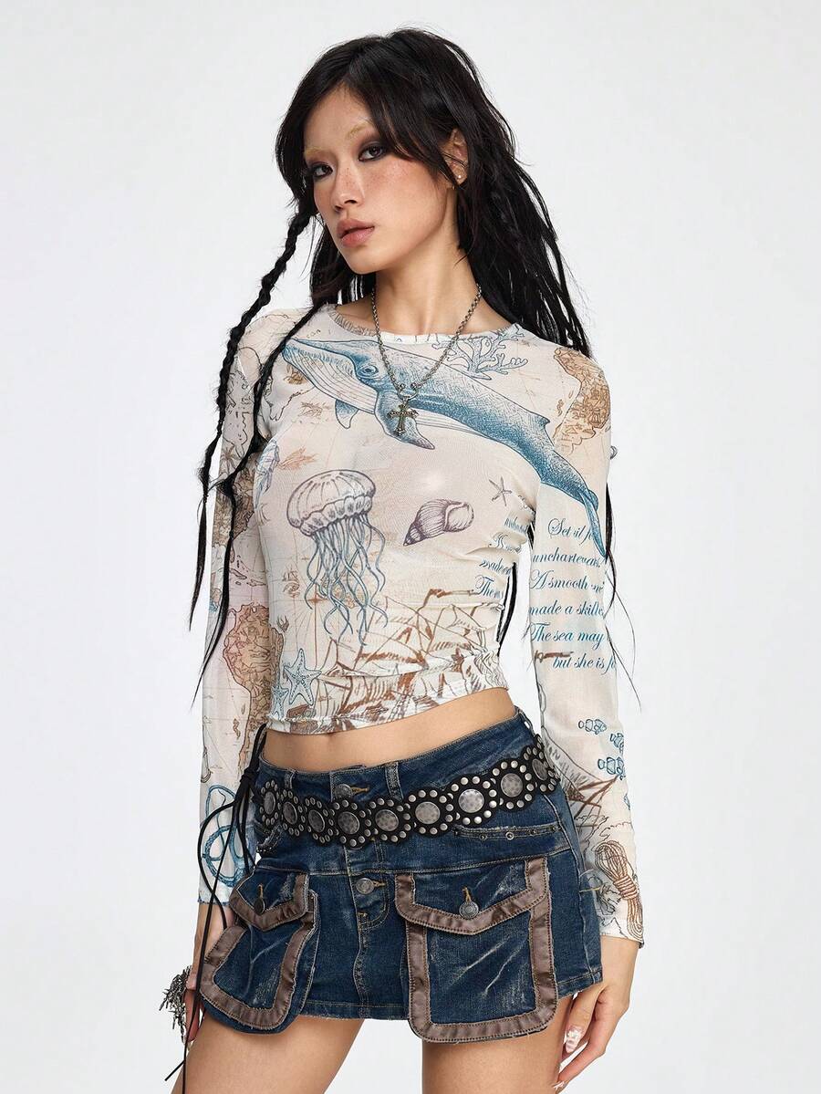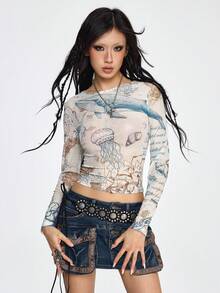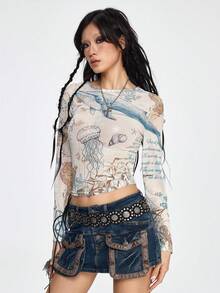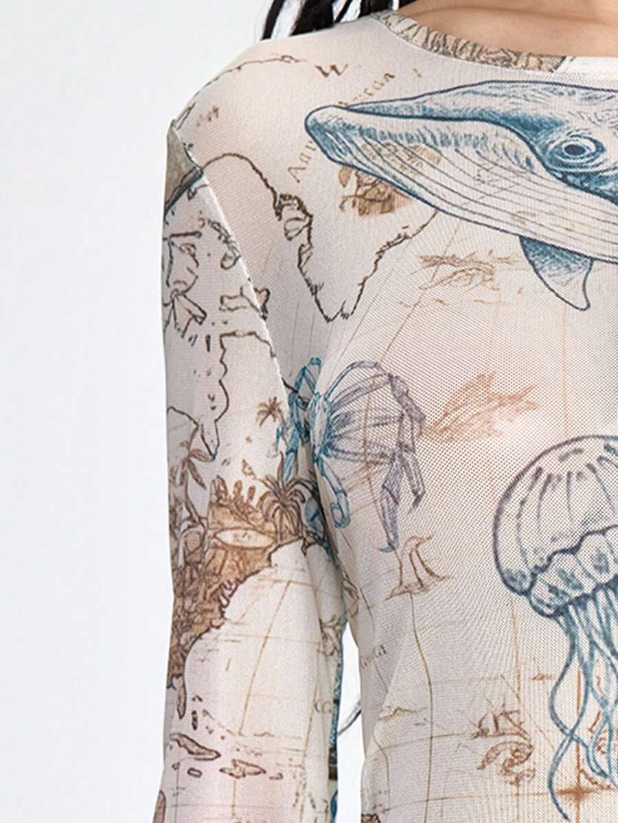 Grunge Punk Blusa transparente de mujer con estampado náutico