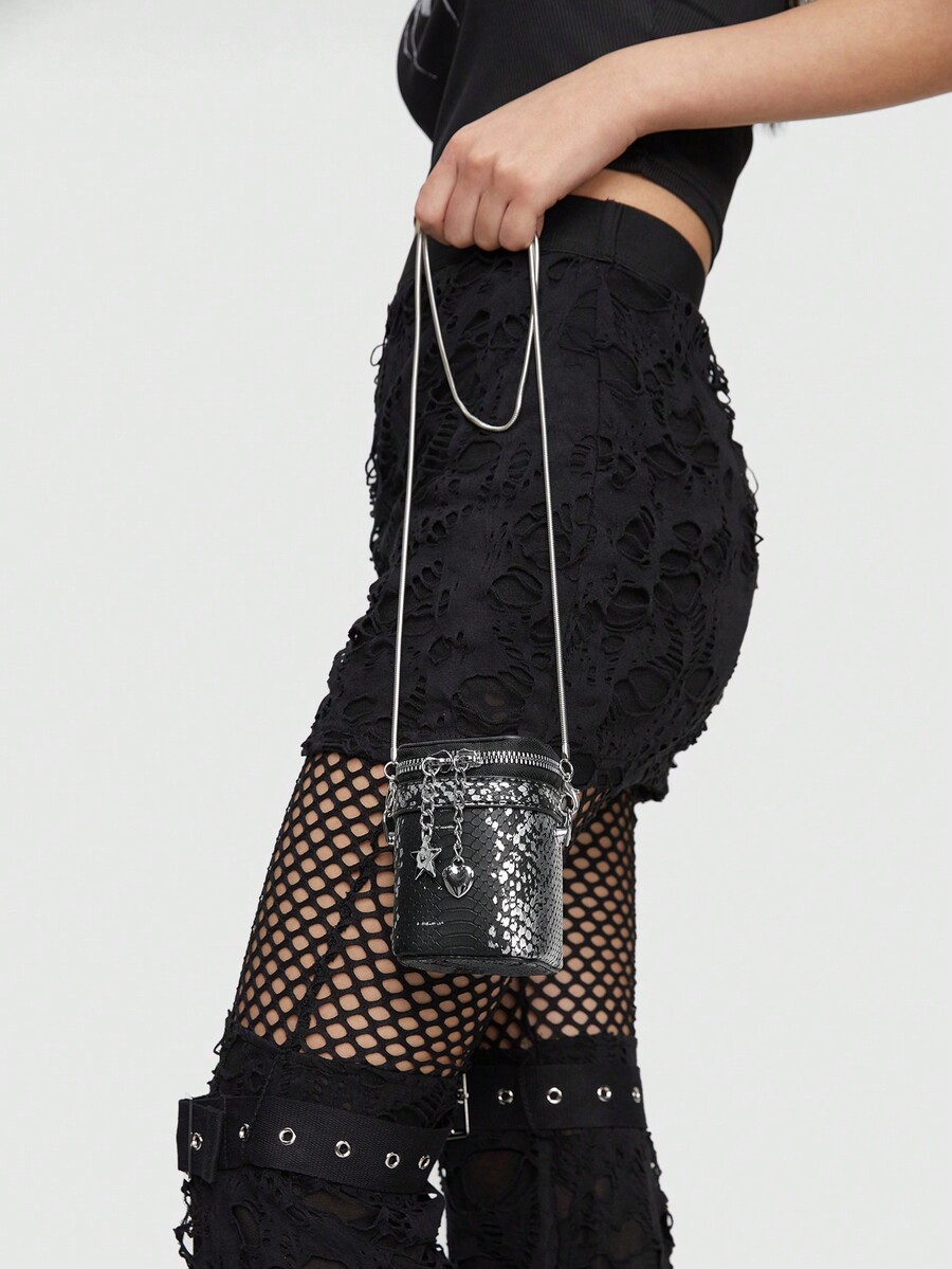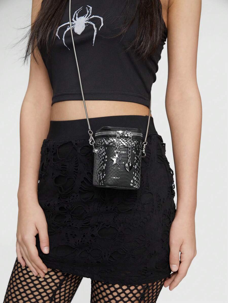 Grunge Punk Nuevo Bolso De Hombro Mini Con Forma De Lápiz Labial Para Mujer Con Cadena, Bolso Cruzado Para Chicas De Moda