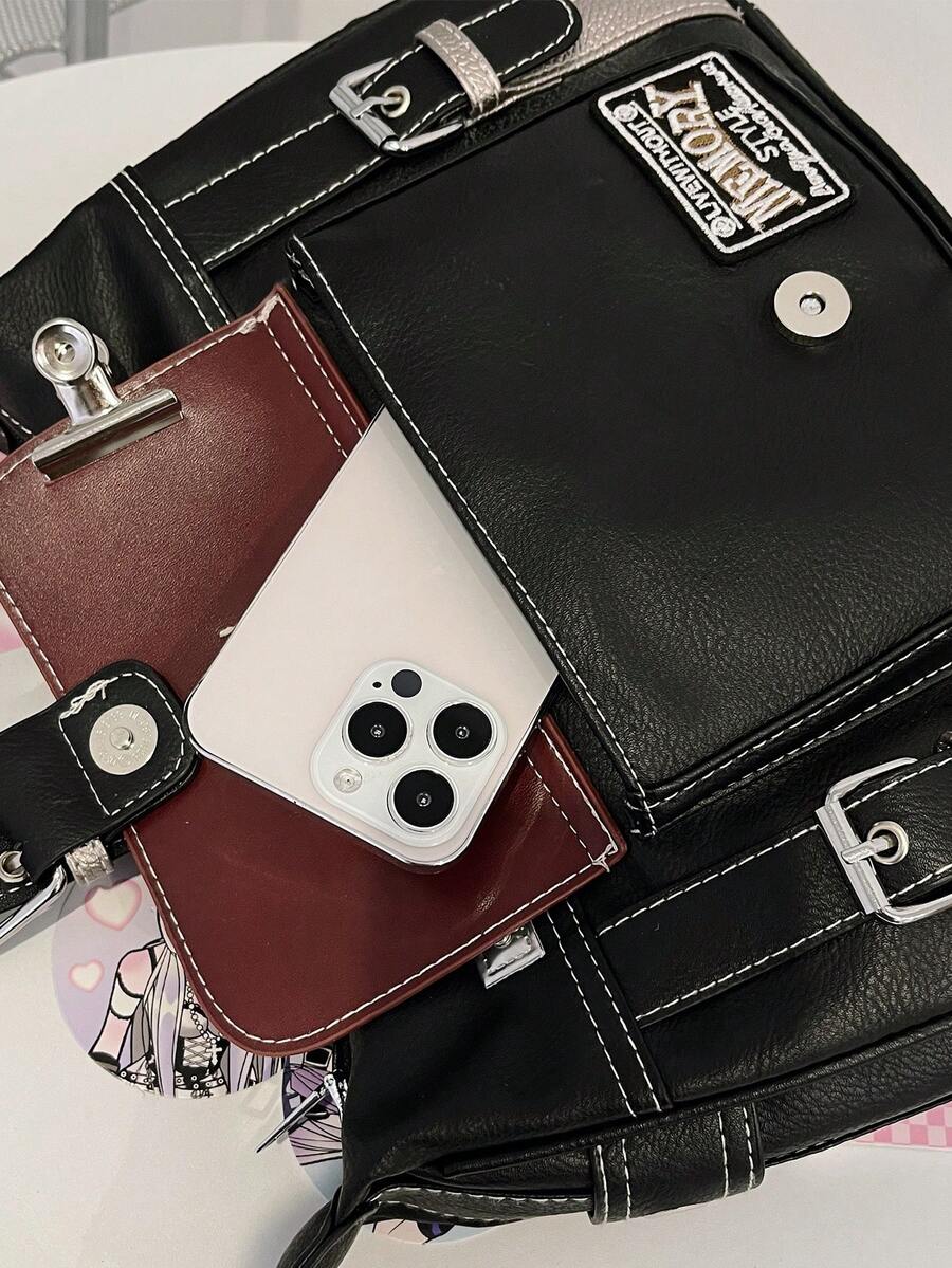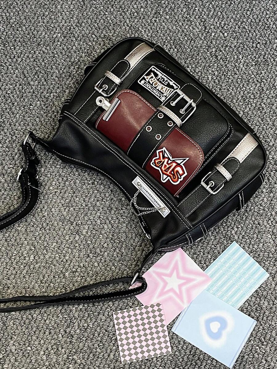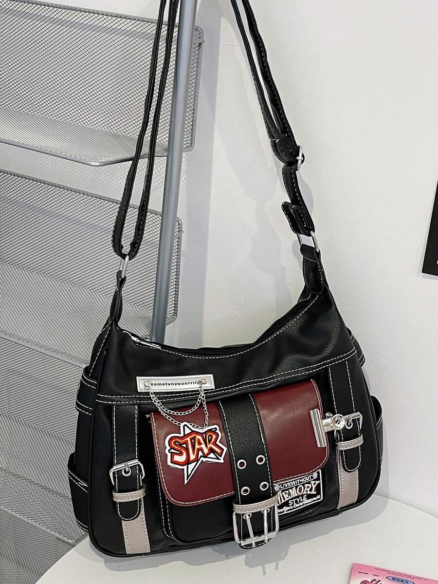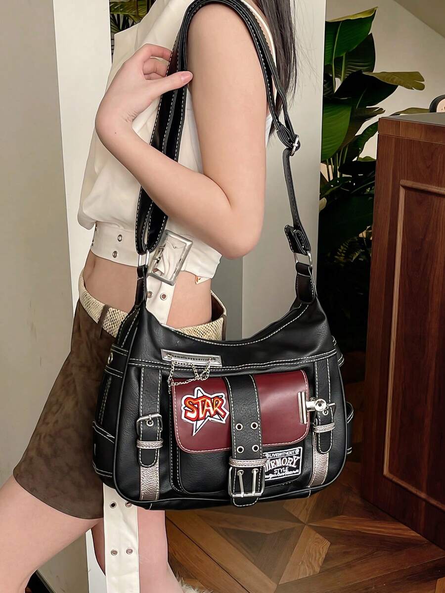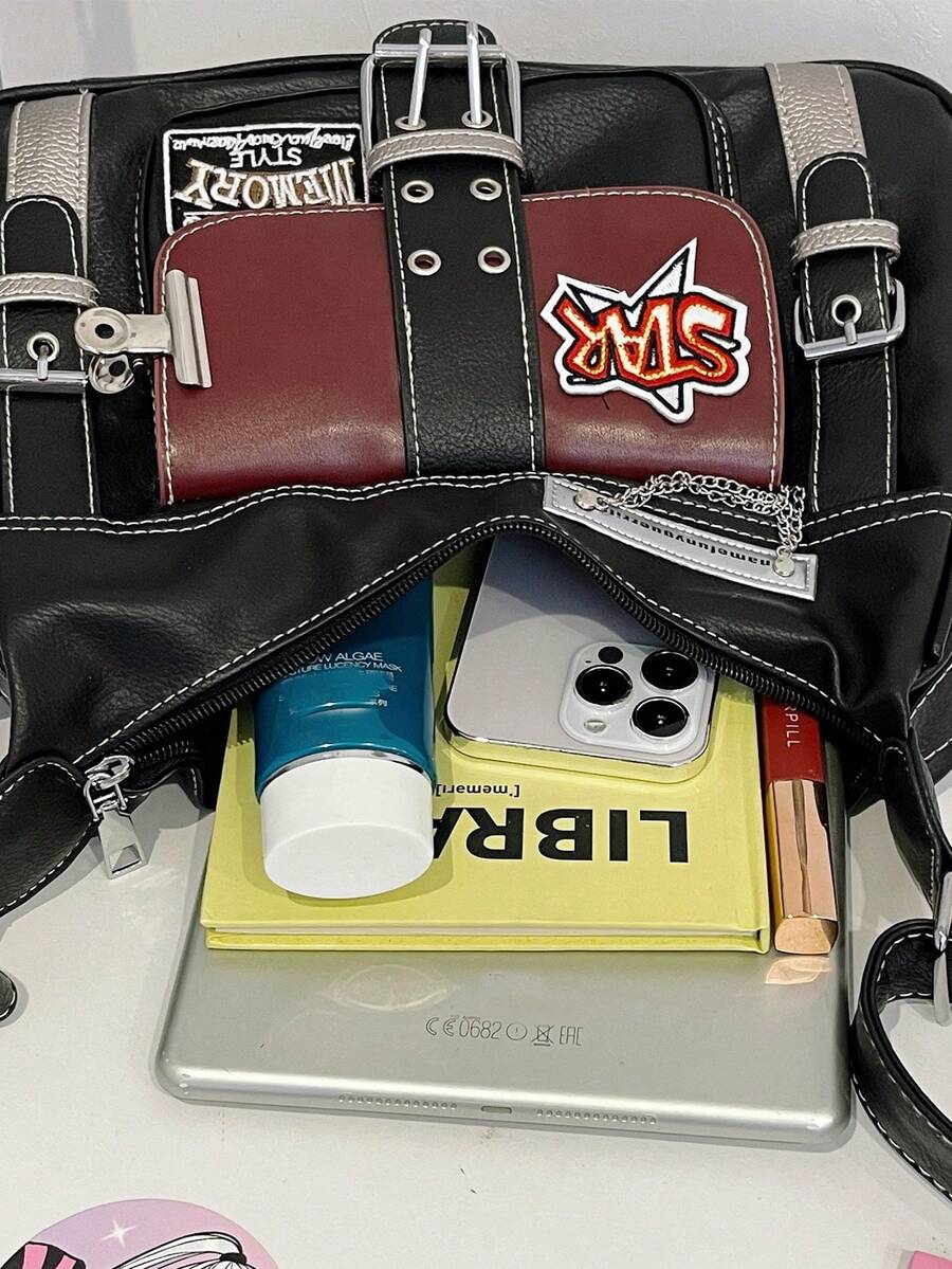 Grunge Punk Nueva bolsa de hombro para mujer de moda en estilo gótico punk con gran capacidad, bolsa tipo maletín de motocicleta