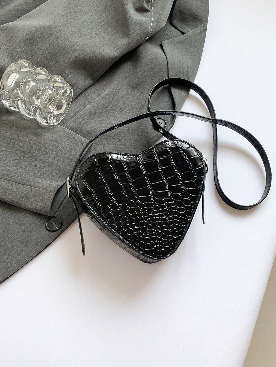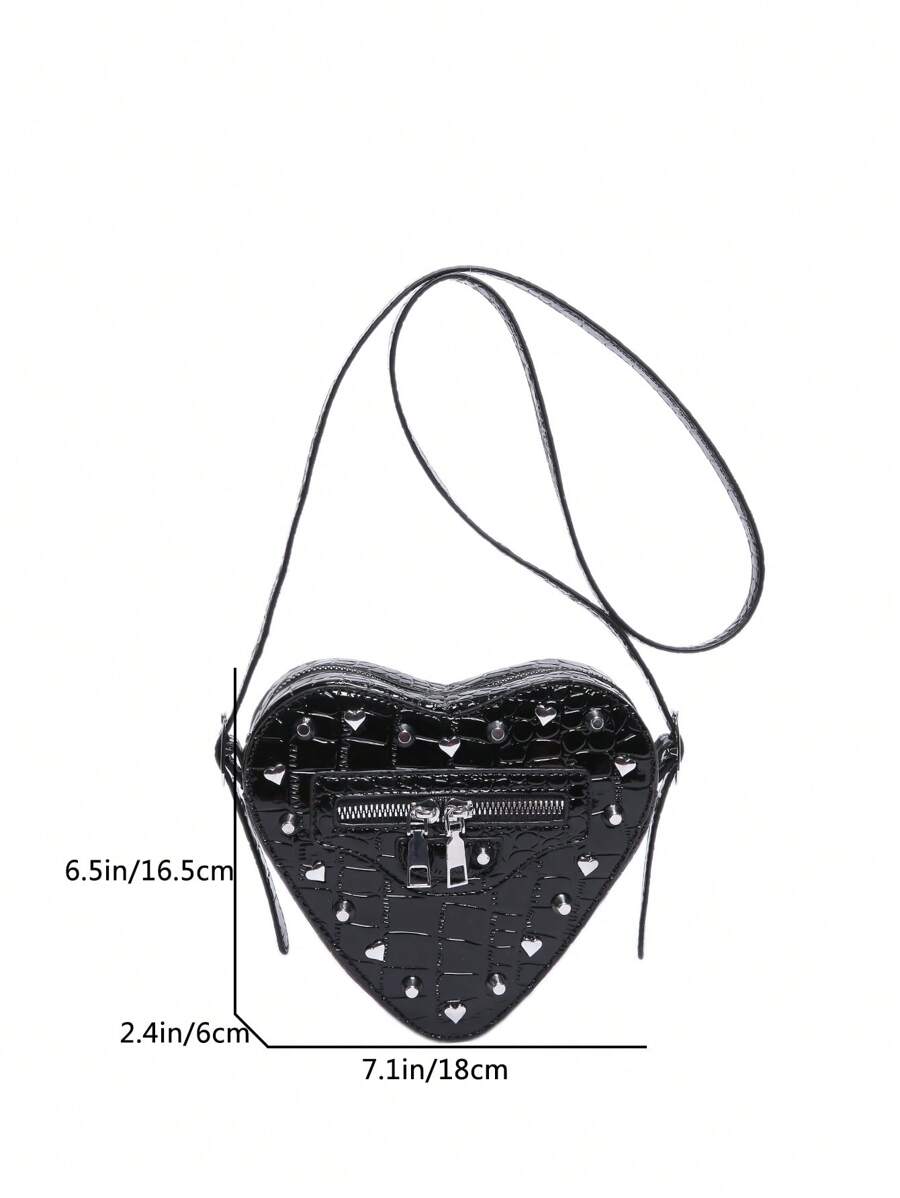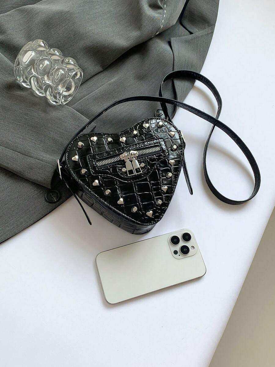 Grunge Punk Nuevo bolso de hombro con estampado de cocodrilo de moda para mujer, bolso bandolera punk con remaches y detalles dulces para chica