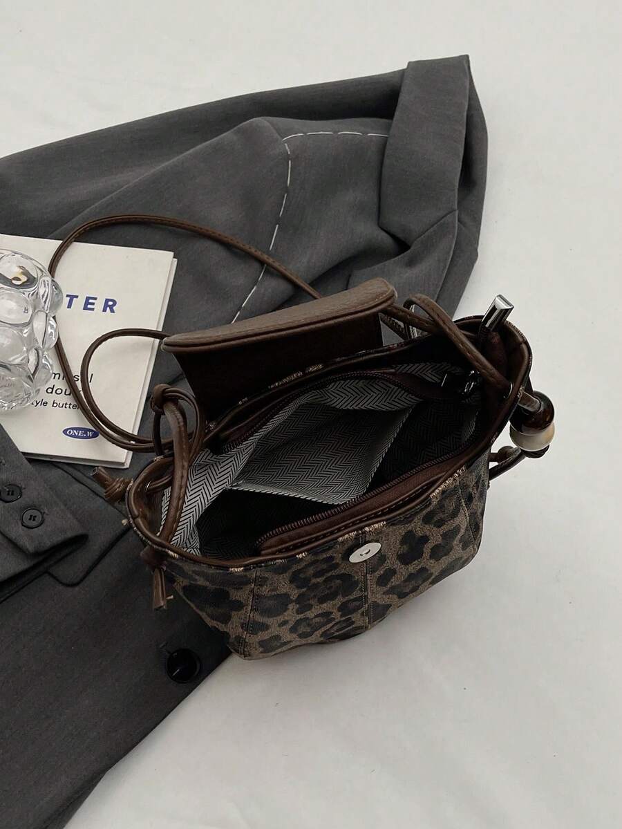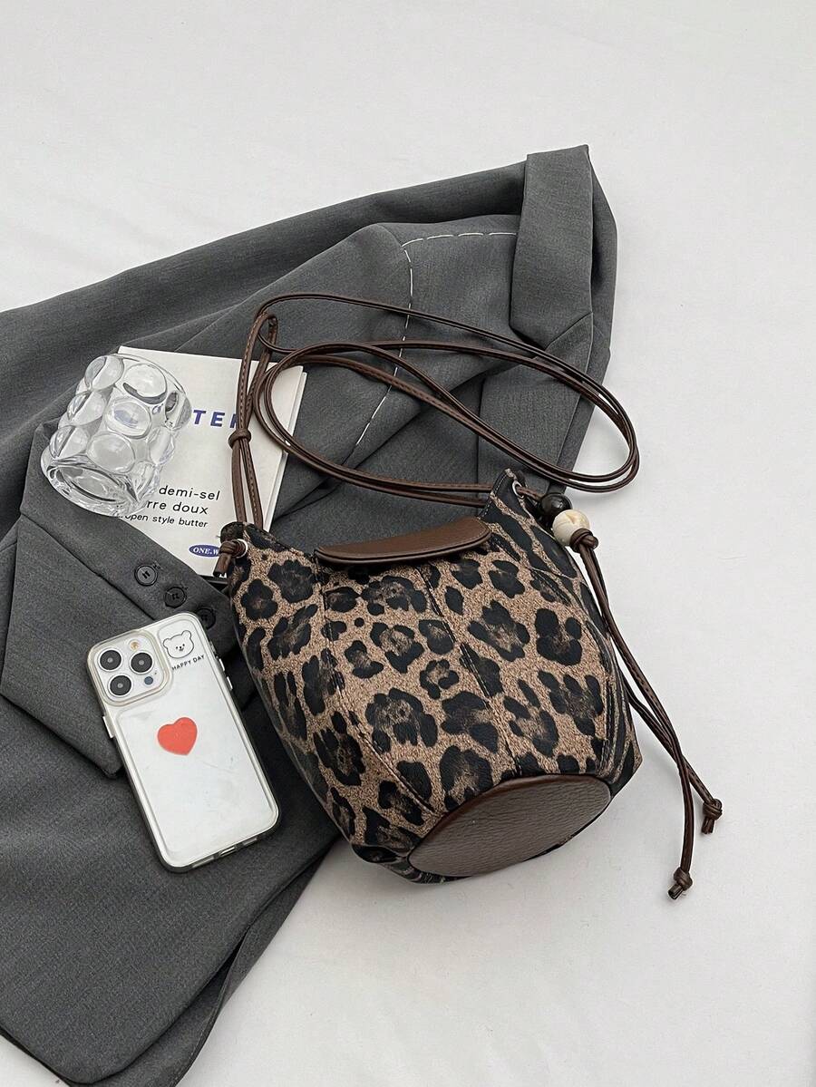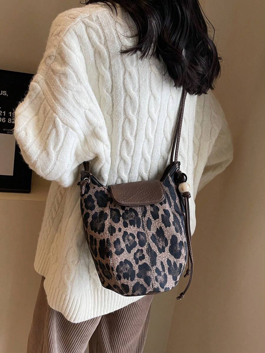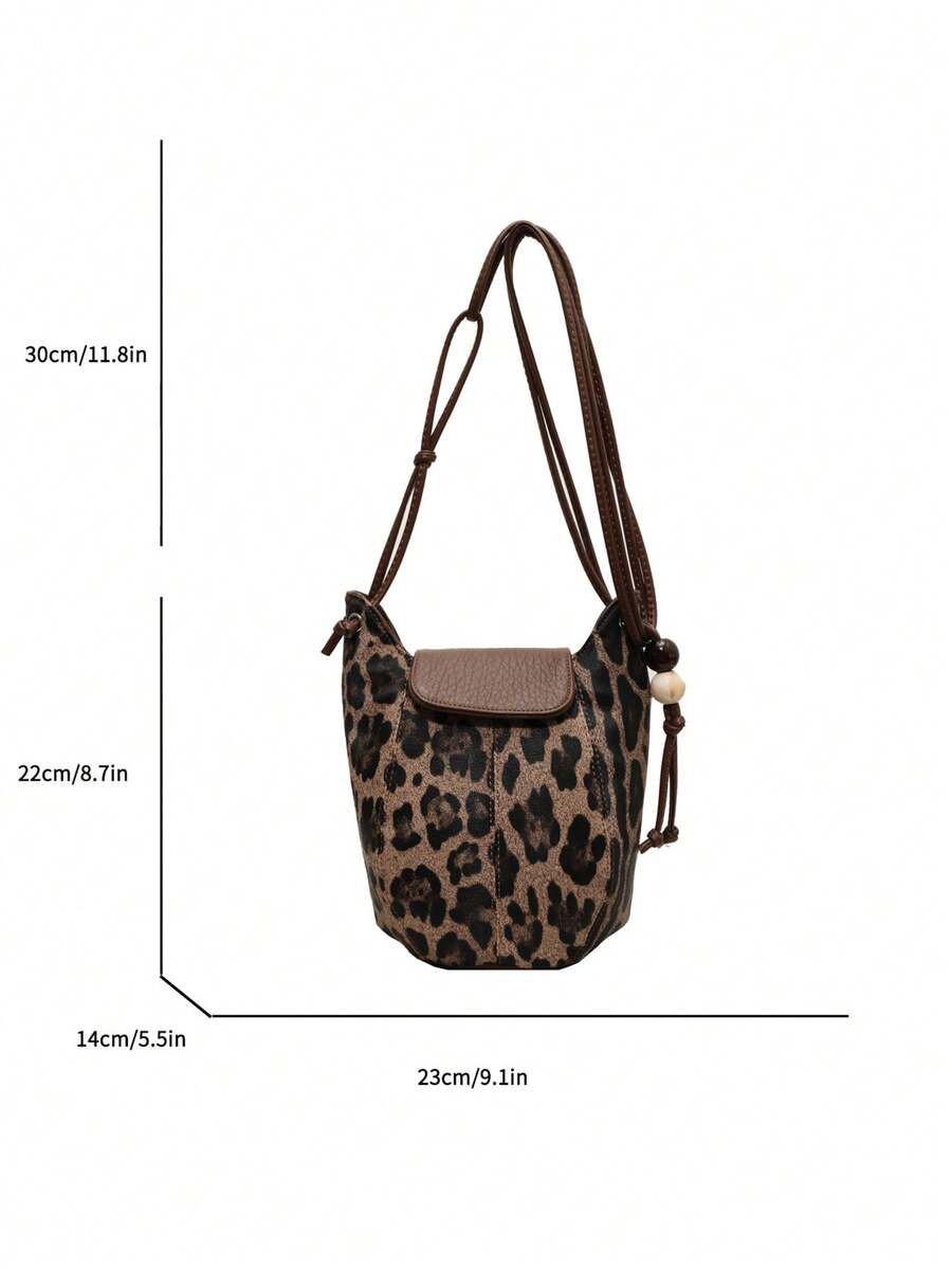 Grunge Punk Nuevo bolso de hombro, bandolera y tipo cubo casual y elegante con estampado de leopardo para mujer