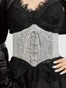 Grunge Punk Nuevo cinturón de cintura metálico brillante, adecuado para combinar con vestidos
