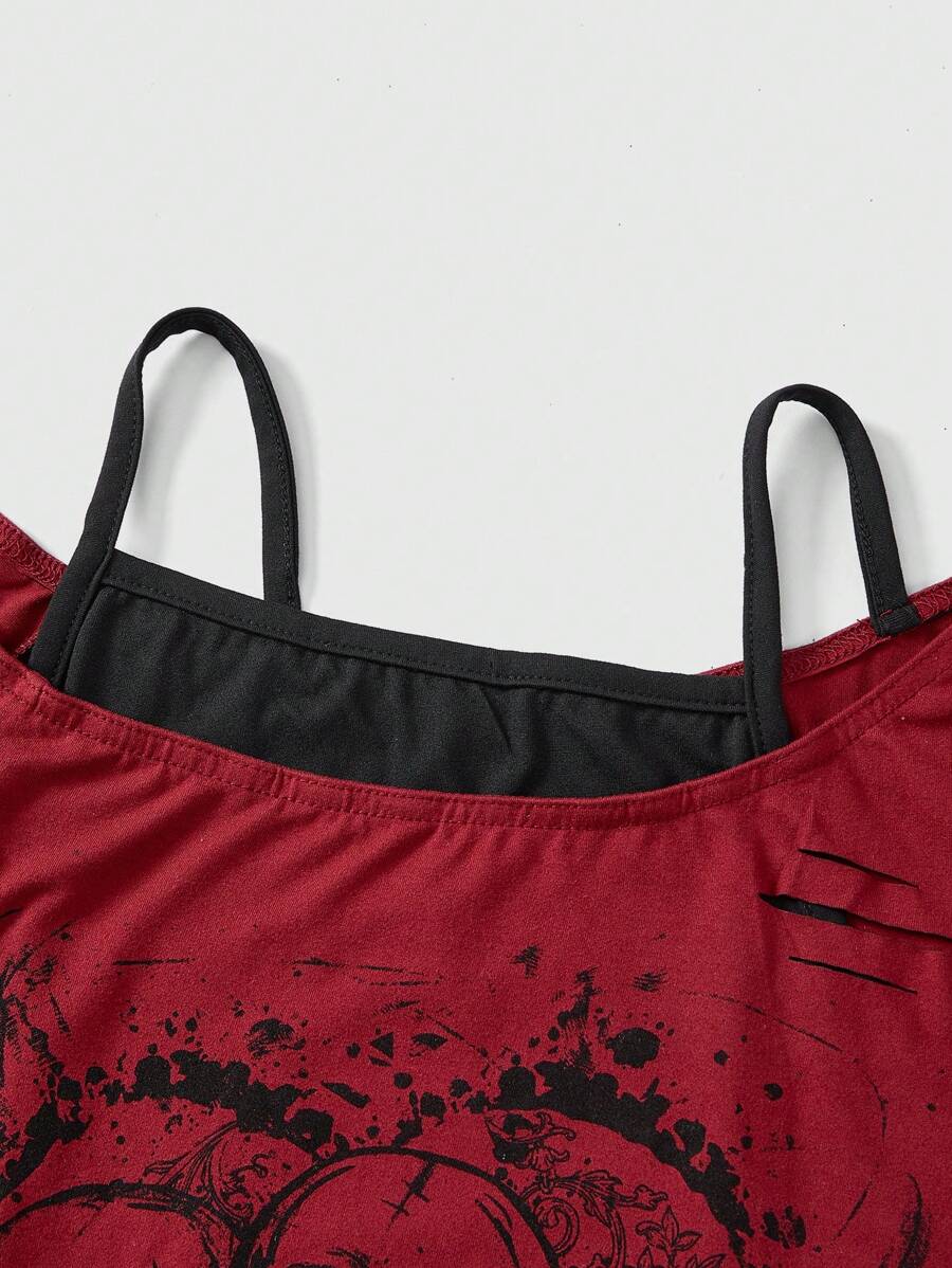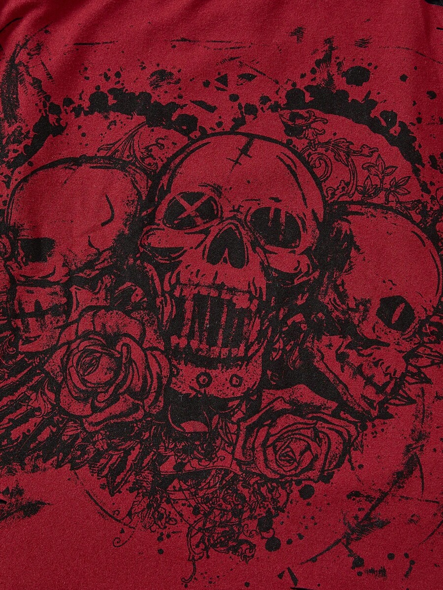 Grunge Punk Top de manga corta con cuello asimétrico, diseño de calavera y rosa recortados en estilo PUNK