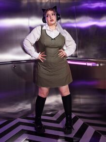 Grunge Punk Vestido tank con estampado de cuadros sin camisa