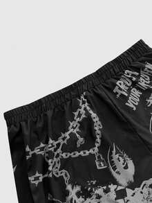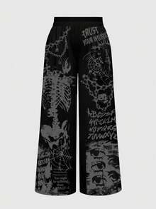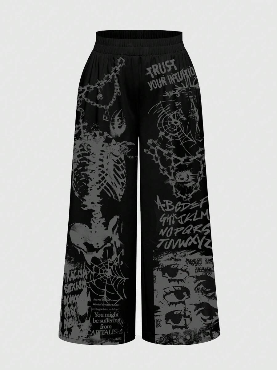 Grunge Punk Pantalones anchos y sueltos con estampado de telaraña, ojo, cadena y huesos de esqueleto en estilo gótico punk y misterioso para tallas grandes