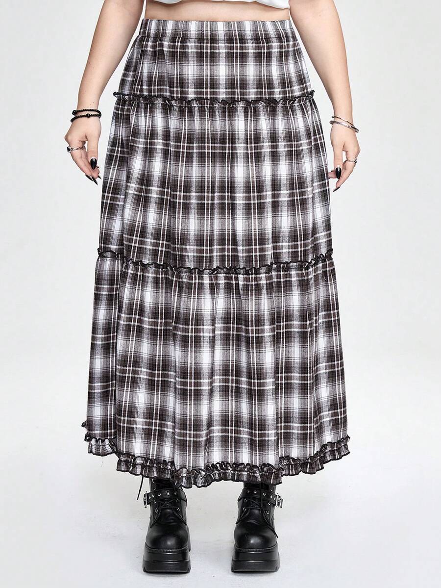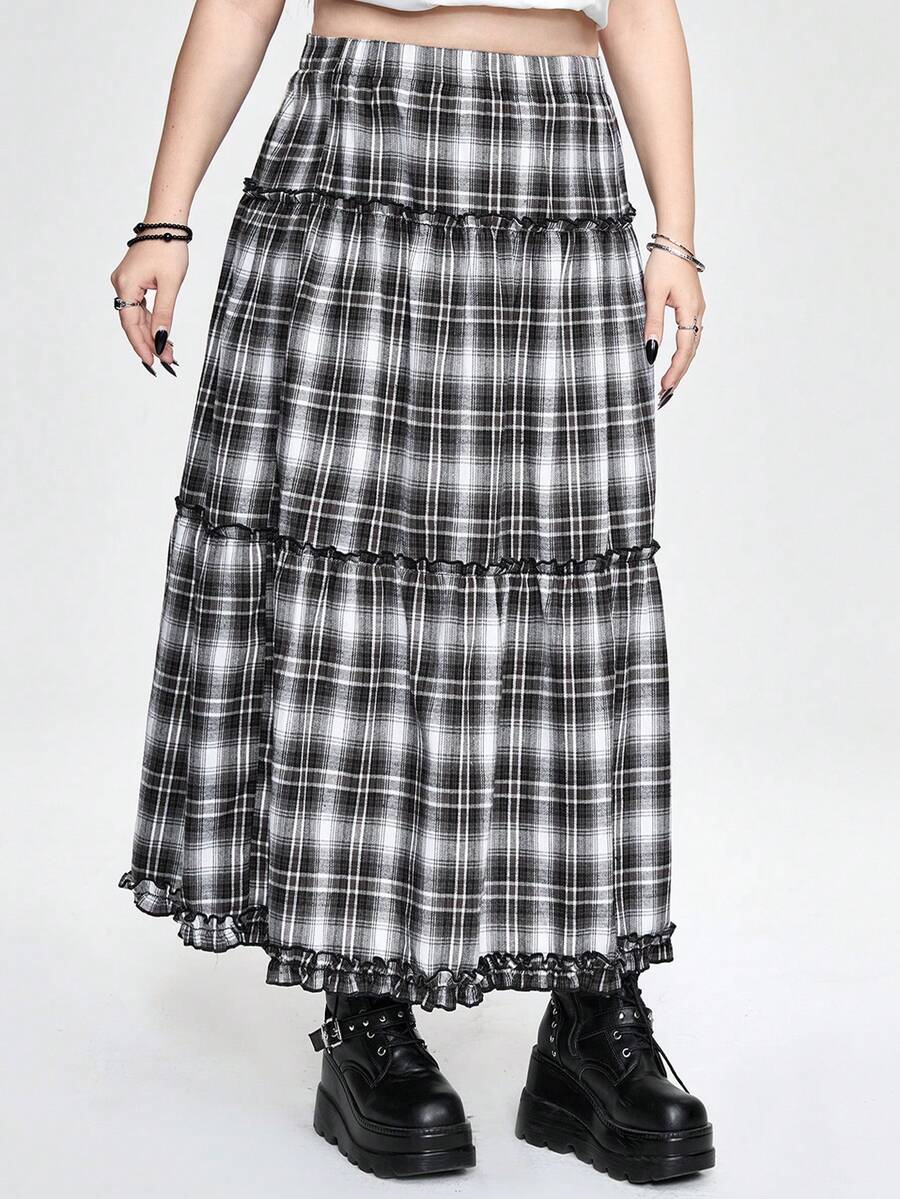 Grunge Punk Falda de talla grande con estampado de cuadros