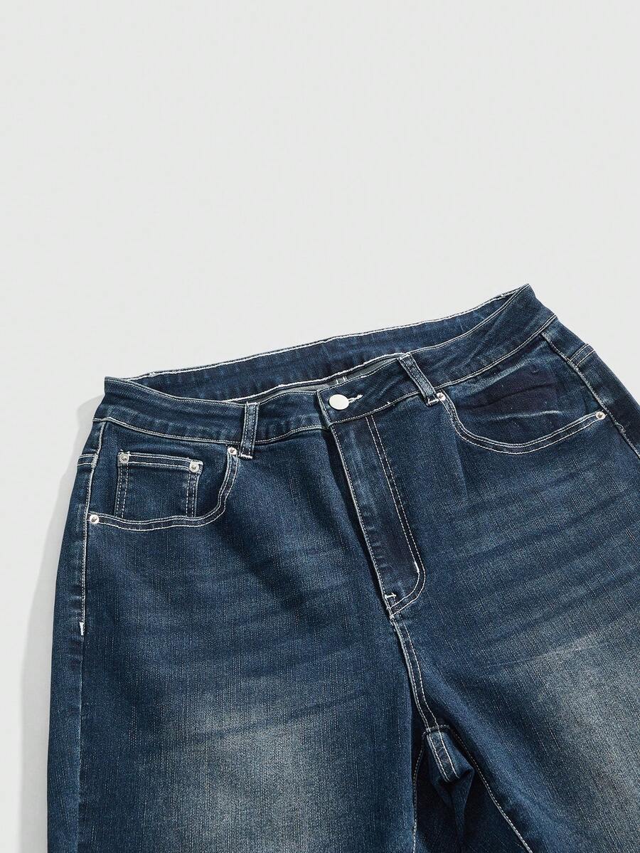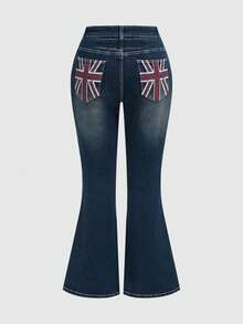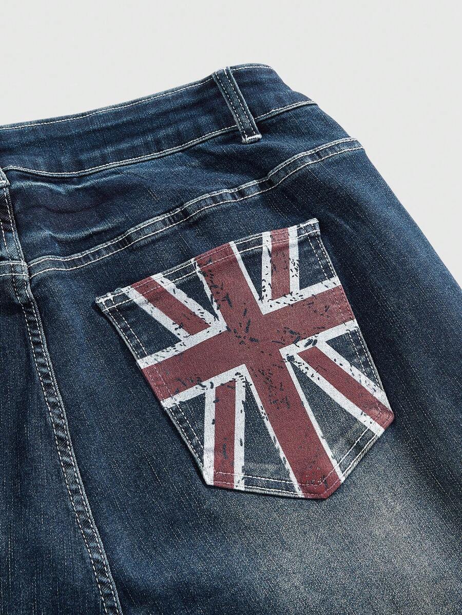 Grunge Punk Jeans acampanados con estampado de bandera del Reino Unido, lavado vintage, con bolsillos, para tallas grandes, estilo Y2K baddie