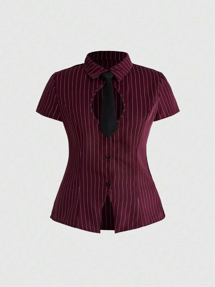 Grunge Punk Camisa de manga corta para mujer con cintura ceñida, cuello falso recortado, estilo sexy y estampado de rayas, en talla grande con estilo Y2K y punk