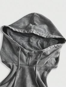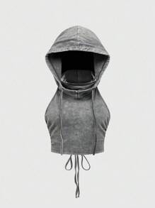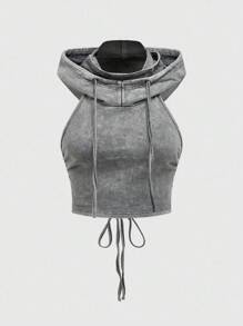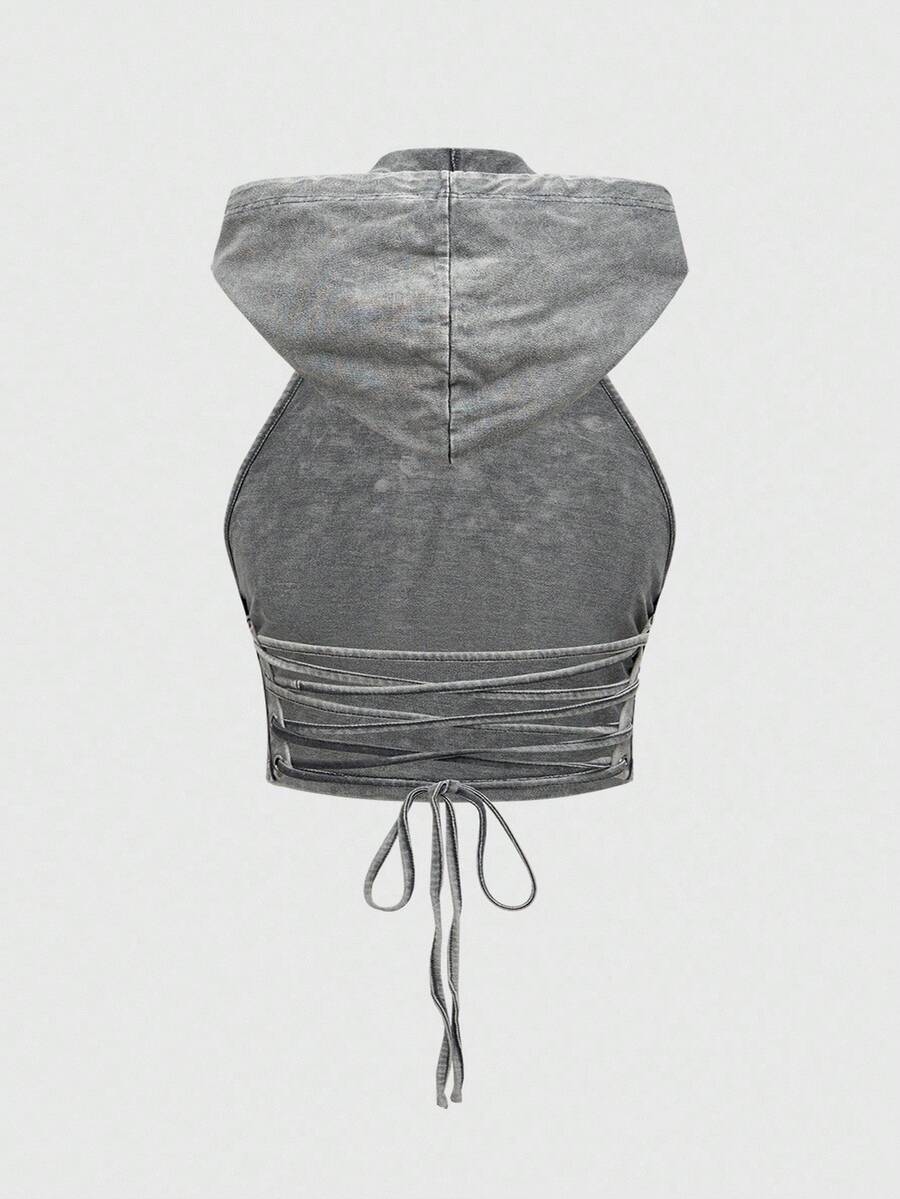 Grunge Punk Top corto ajustado con capucha, diseño de cordones y espalda descubierta, estilo punk apocalíptico para festivales de música, talla grande para mujeres