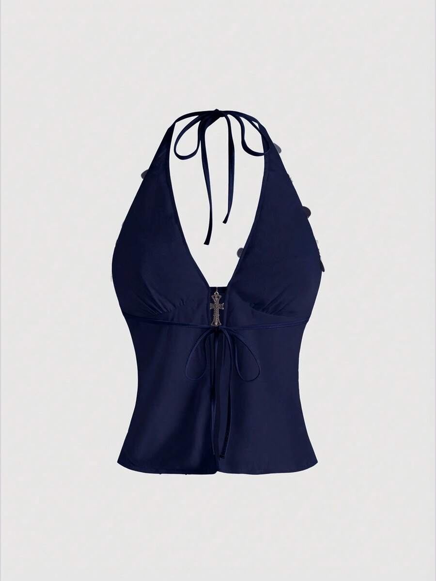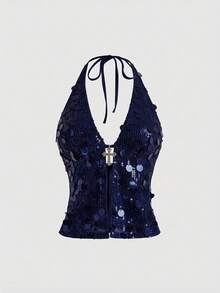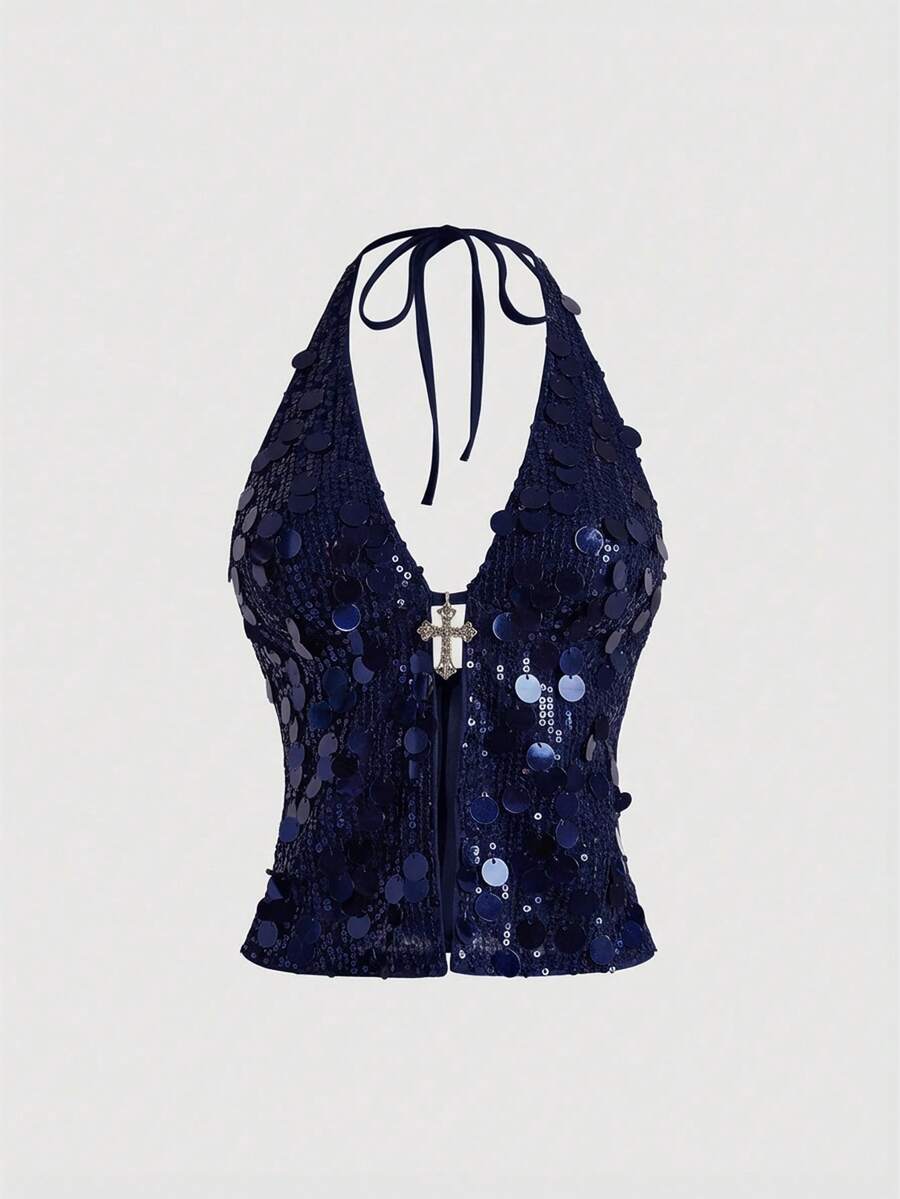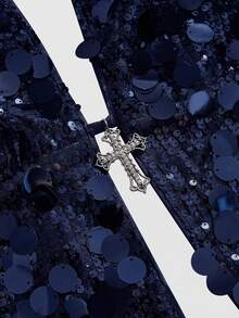 Grunge Punk Disfraz de carnaval de diva punk rock, traje de fiesta de música de festival de Año Nuevo, top de tirantes sexy con lentejuelas y colgante cruzado para mujer, estilo Millennium Y2K