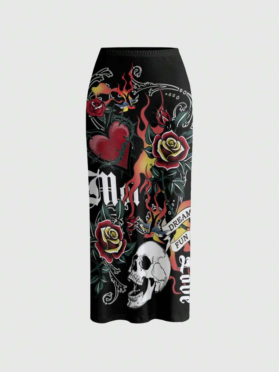 Grunge Punk Falda de mujer con abertura alta de estilo chino sexy para festival de música de rock punk