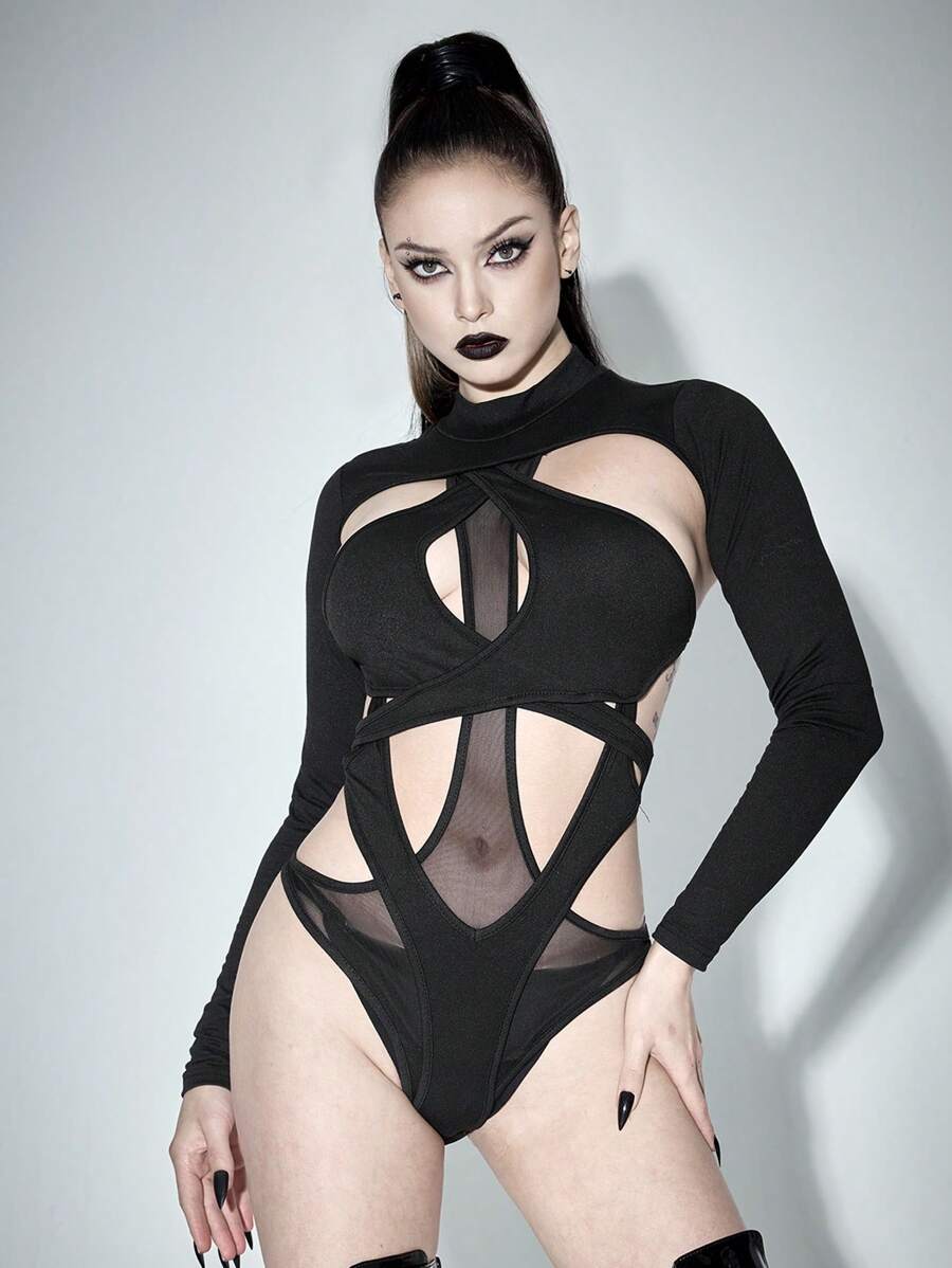 Grunge Punk Bodyduit sexy y con diseño calado para mujer, estilo punk